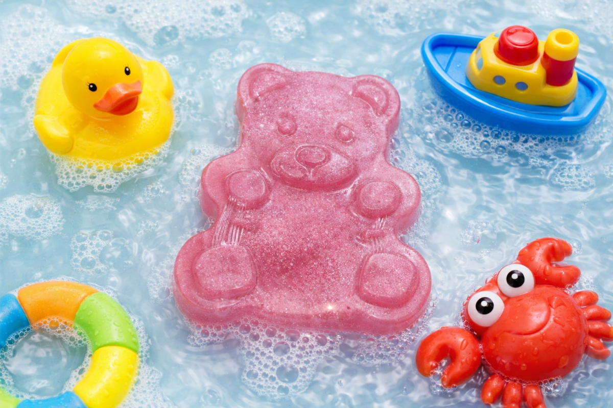 صابونة جلسرين على شكل دبدوب للاطفال تعمل على تنظيف البشرة بدون أن تسبب اى جفاف .