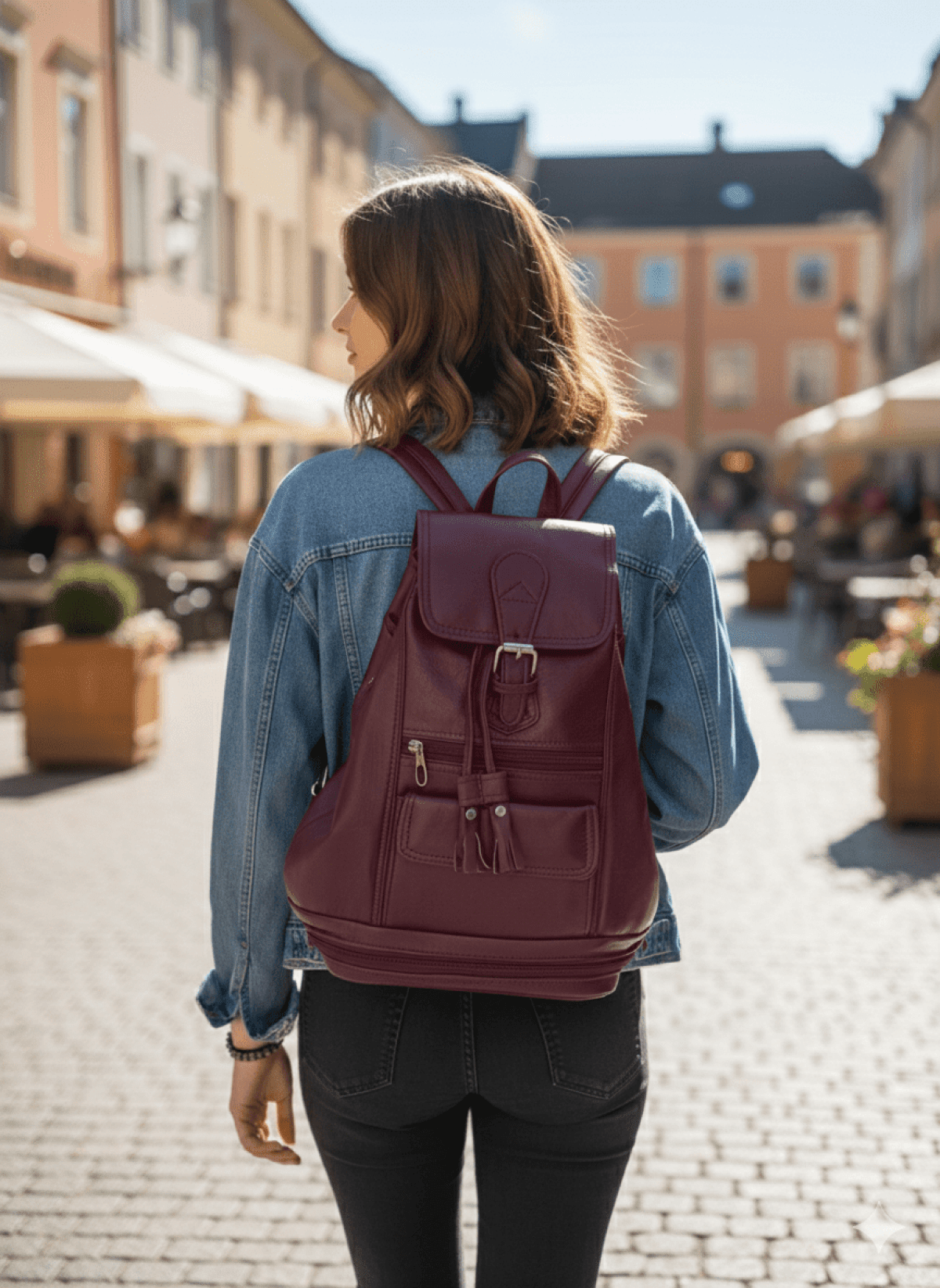 شنطه ظهر جلد طبيعي تنفع الجامعه و كتبها و ملازمها او الشغل و اللاب 3 جيوب للمحفظه و الفون و سوسته توسع للطول