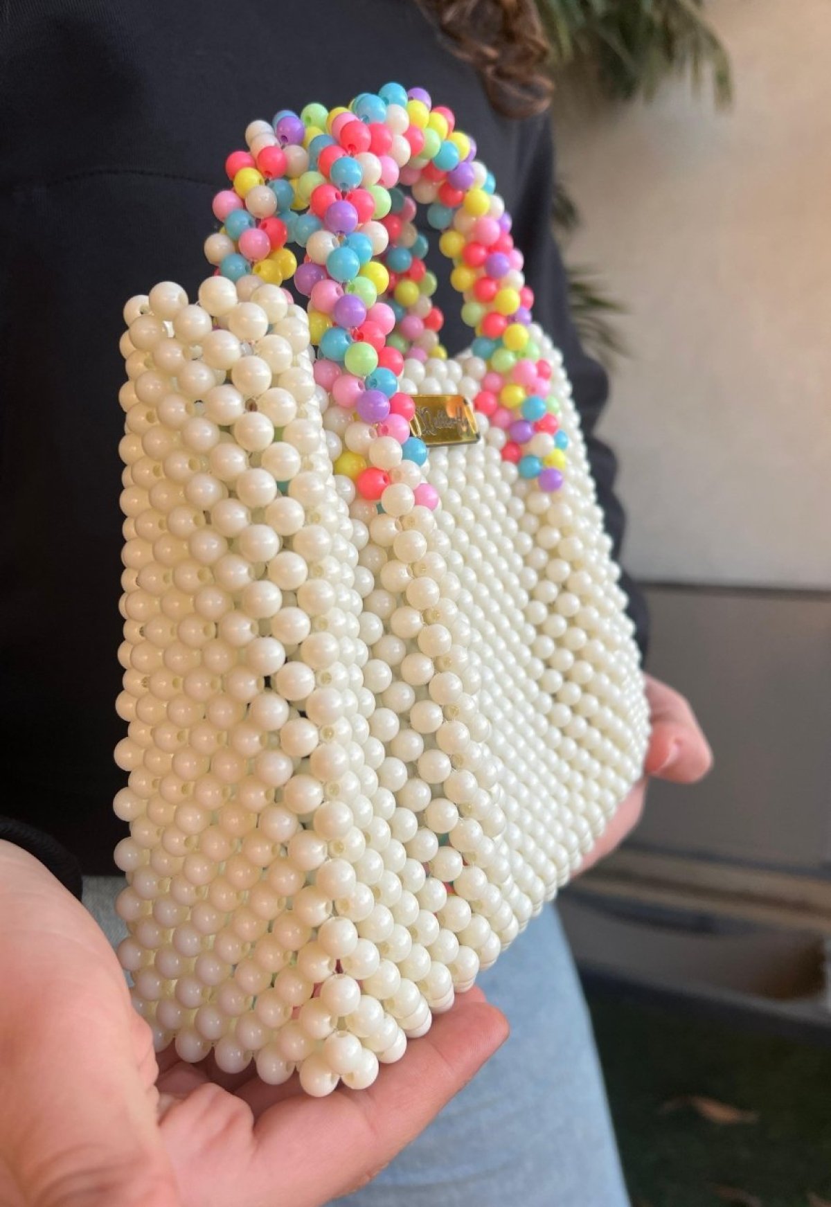 شنطه خرز مط ب يد ملونه مقاساتها طول 17 سم عرضها 22 سم عمق6 سم