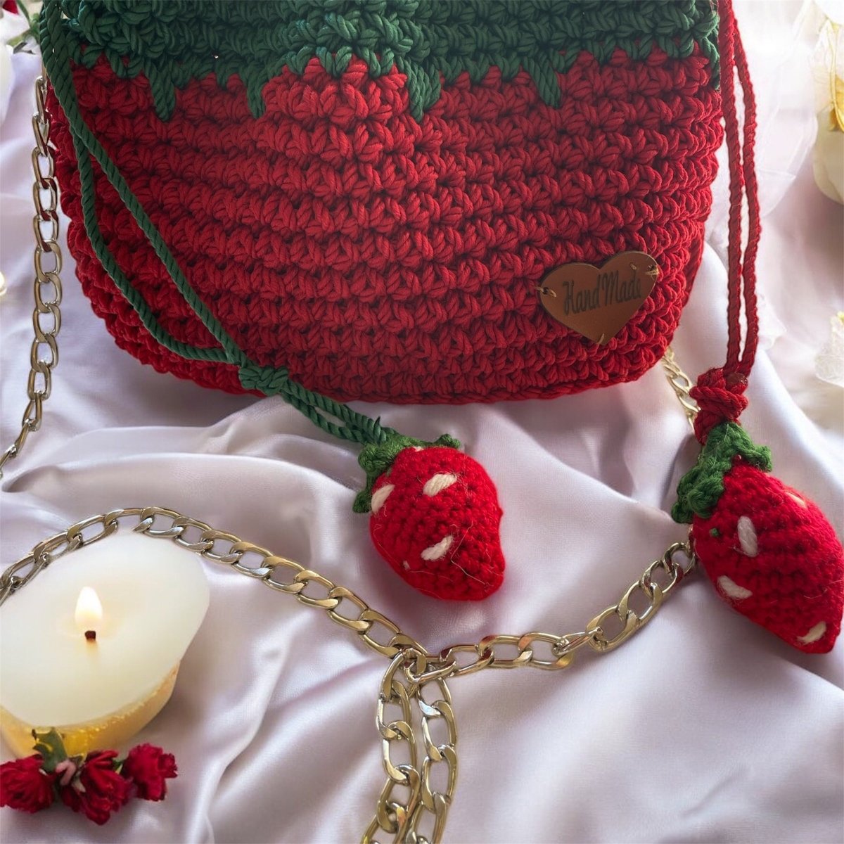 حقيبه كروشيه صنعت يدويا من خيوط المكرميه المصري خفيفه جدا لها بطانه من الداخل من قماش الستان المستورد مقاس ٢٥/٢٠ لها دراع كروس من السلسله المعدن