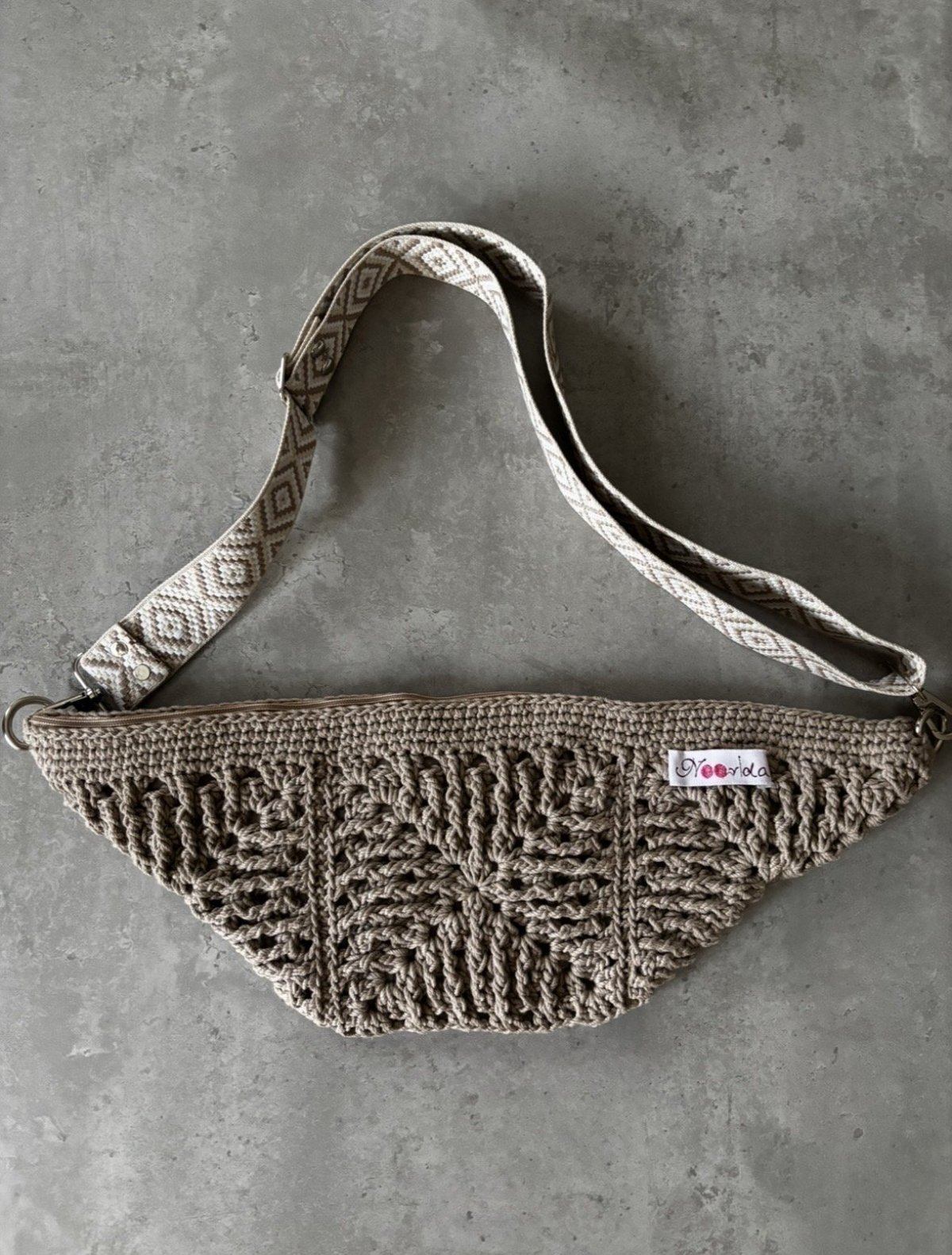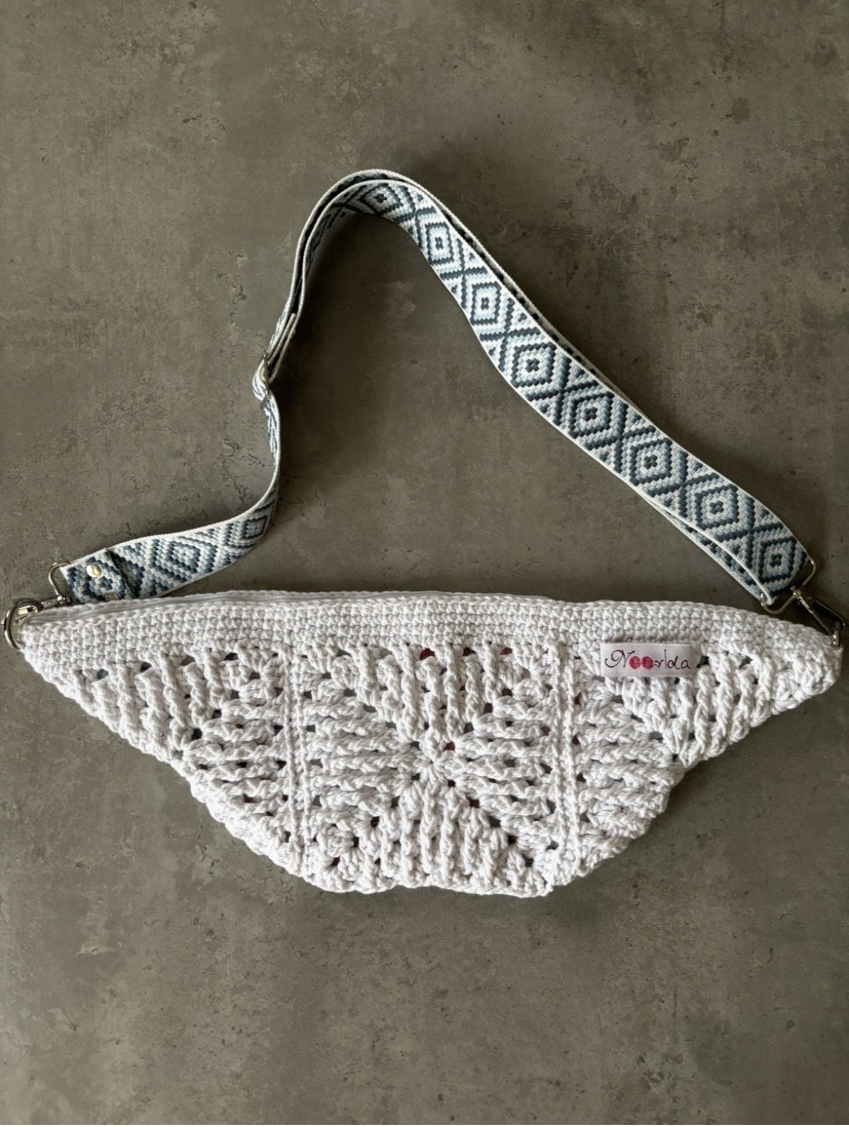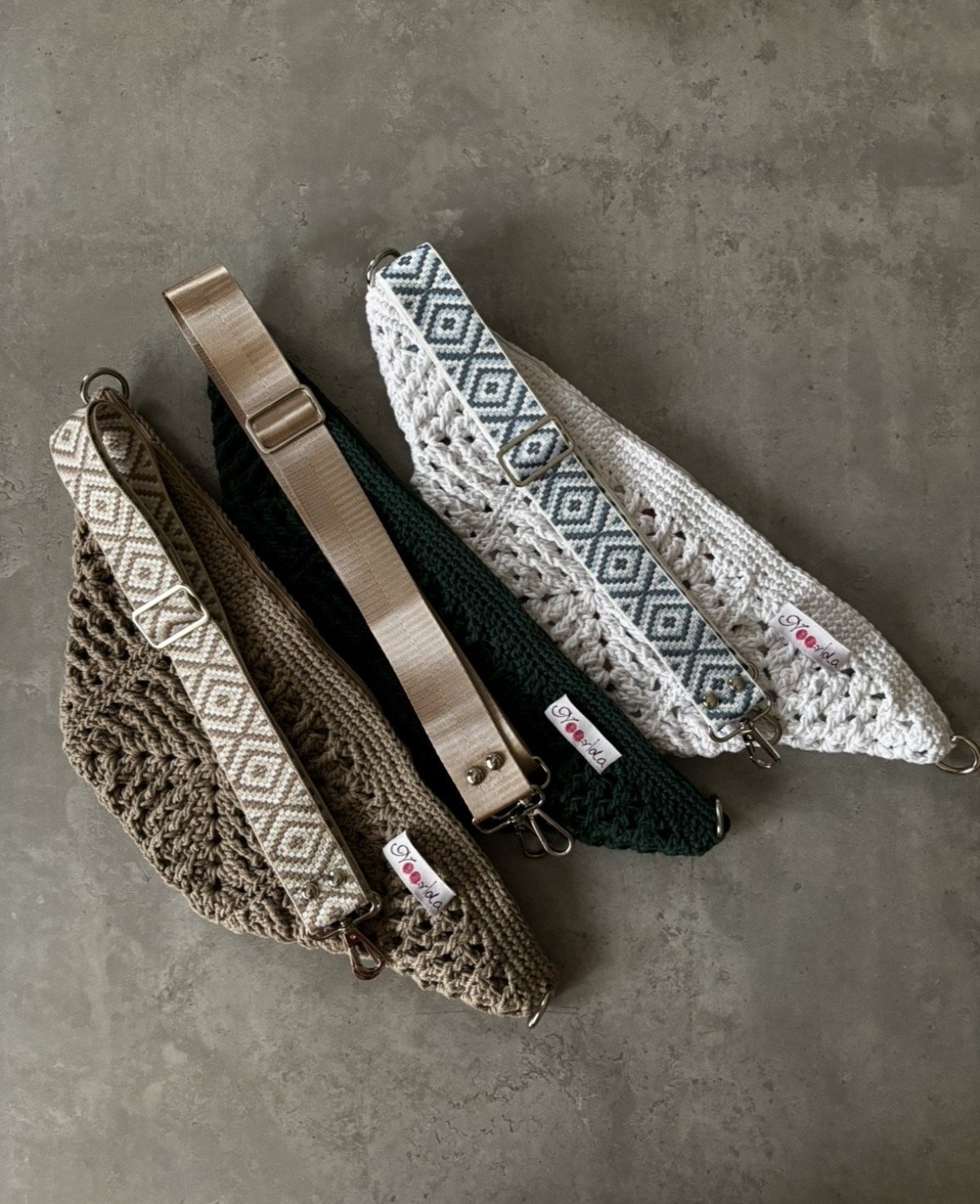 شنطة كروس صغيرة مصنوعة من خيط قطن مصري سهلة في الاستخدام ومناسبة للاستخدام اليومي متوفرة فوري الألوان المتاحة : أبيض ، بيج ، زيتي