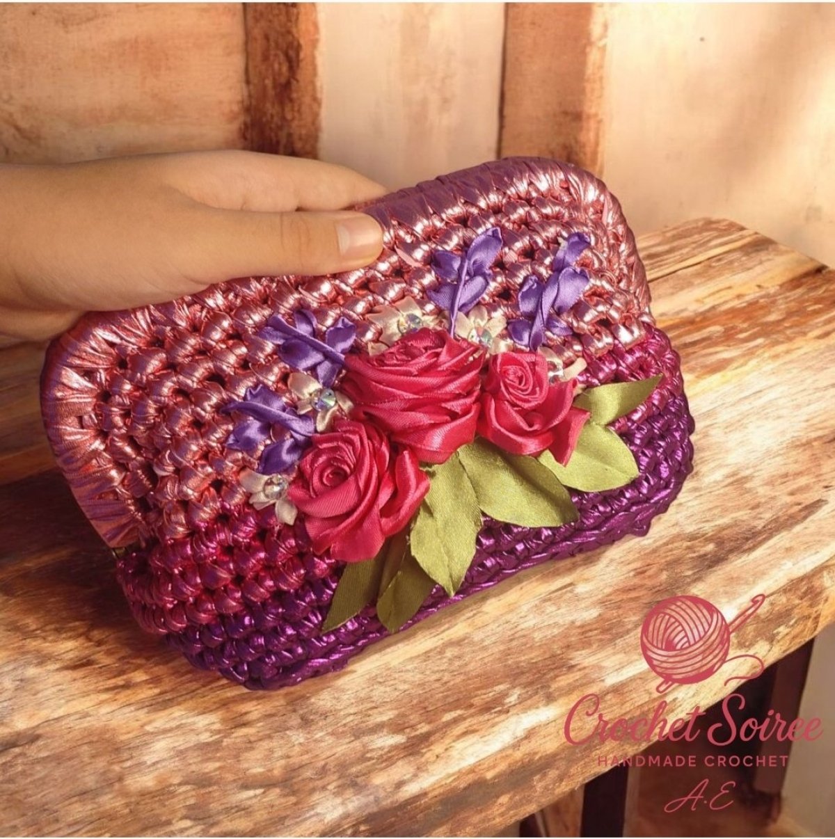 كلاتش سواريه مقاس 20*15 مطرز بشرائط الستان ومبطن من الداخل
