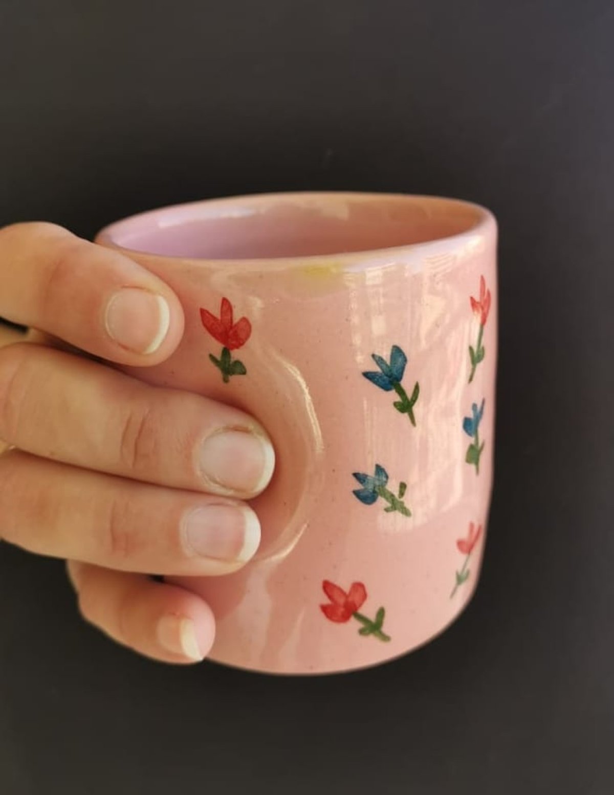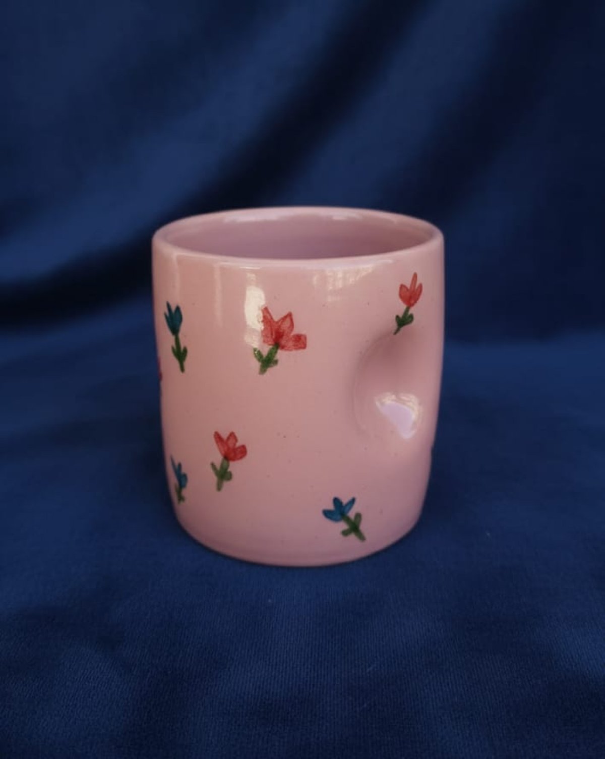 كوب خزفى سعة 350 مل تقريبا، مرسوم يدويا بزخارف من الازهار ، صالح للاستخدام فى المايكرويف
