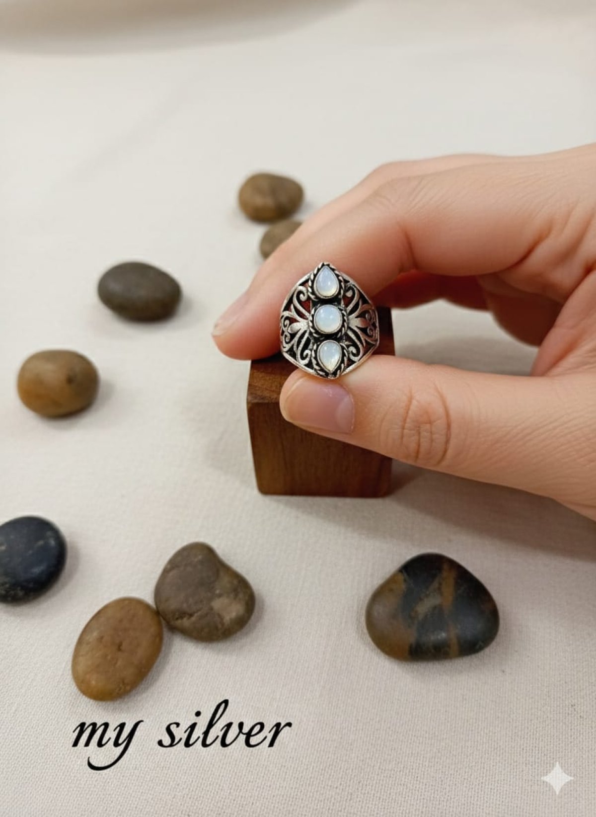 خاتم عربي فضه عيار٩٢٥ مطعم بالصدف
