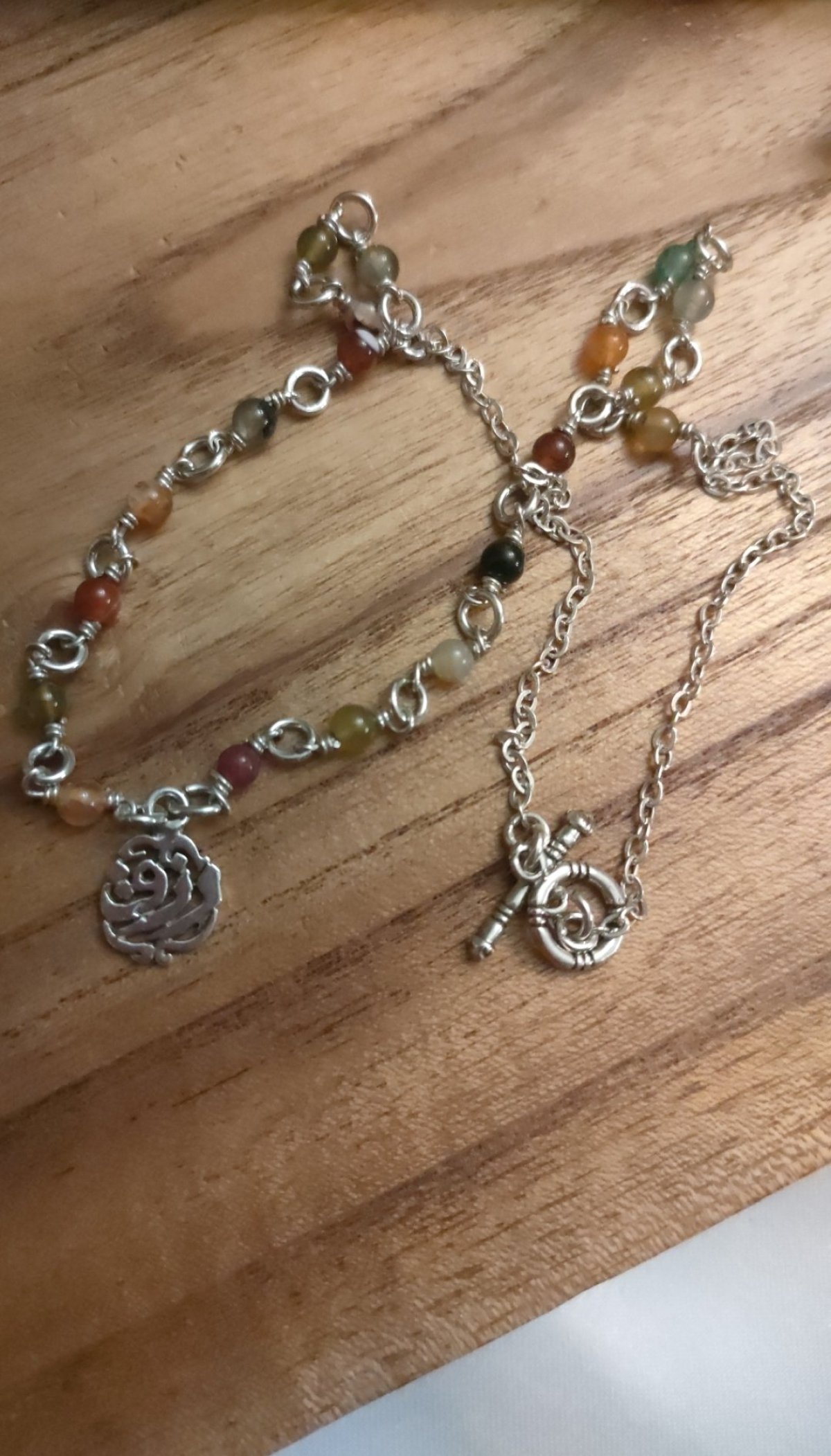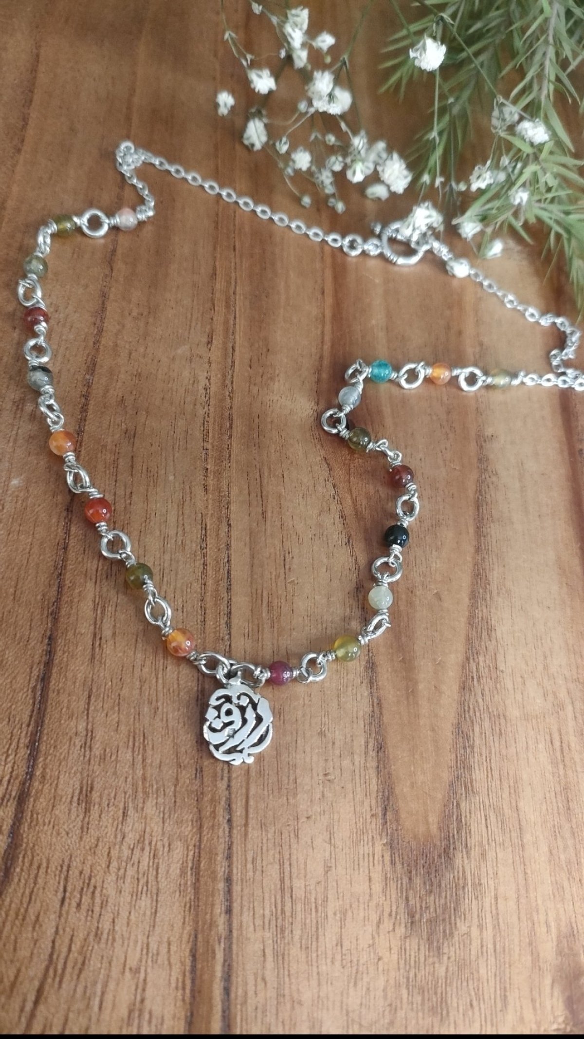 سلسله من الفضه العربي بكلمة رزق مع احجار العقيق المميز