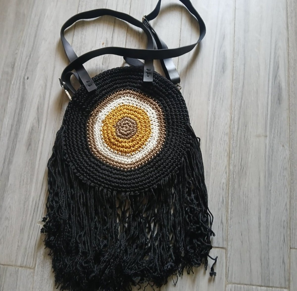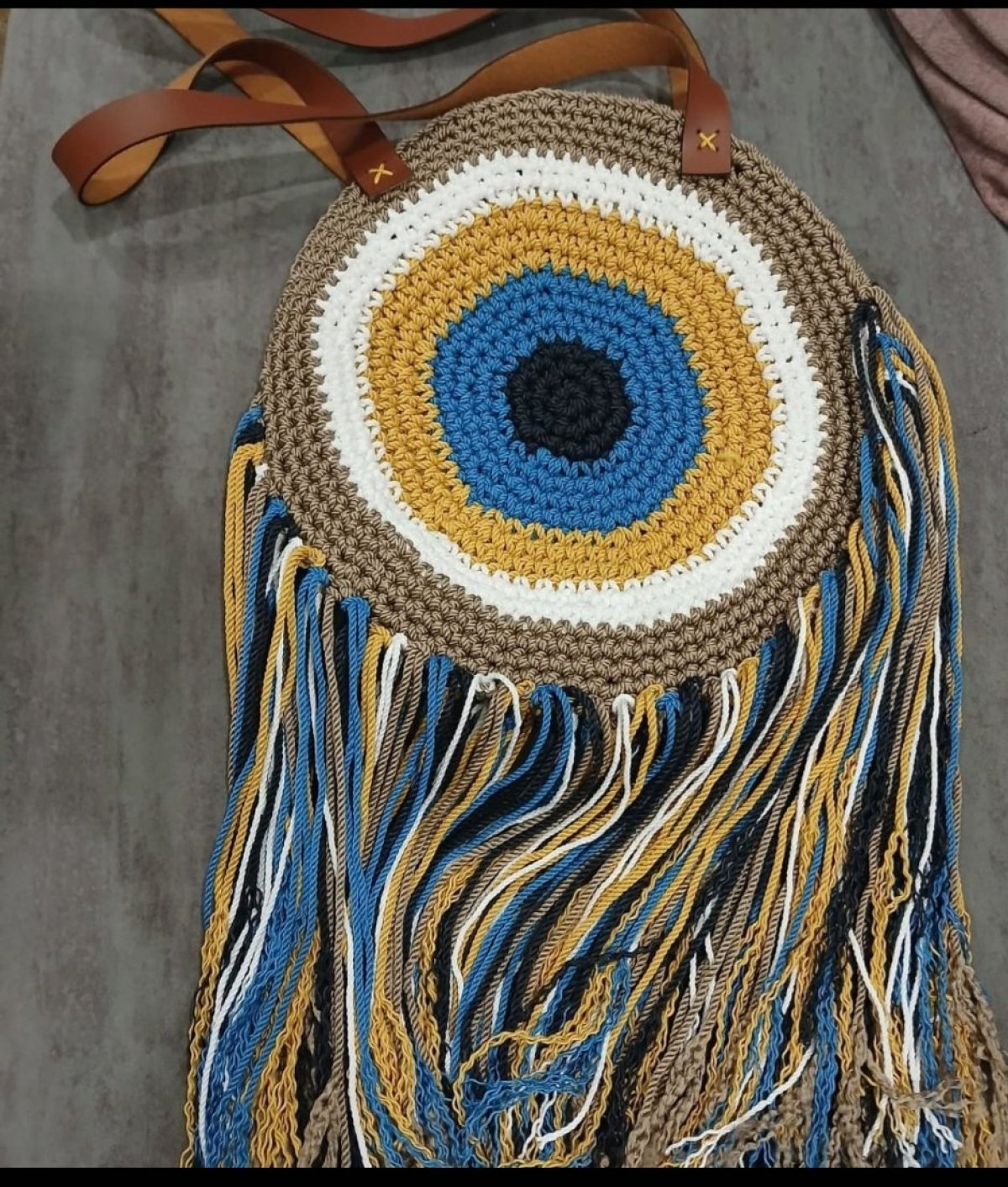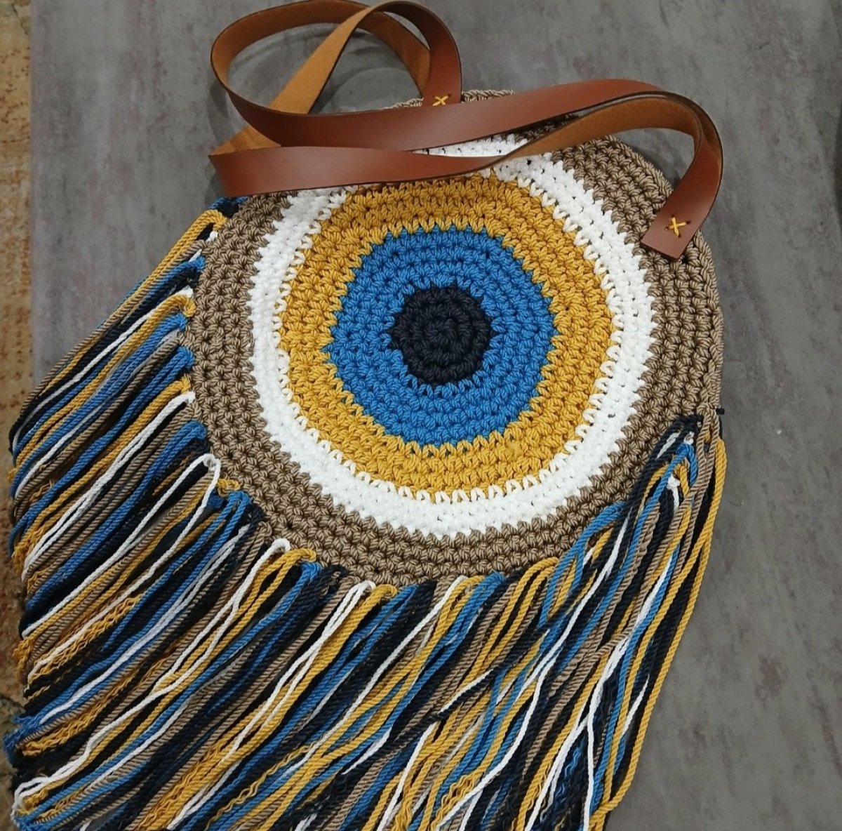 شنطة من الكروشية مع يد من الجلد مناسبه لاي وقت و متاح تنفيذ اي لون مقاس ٣٠ سم