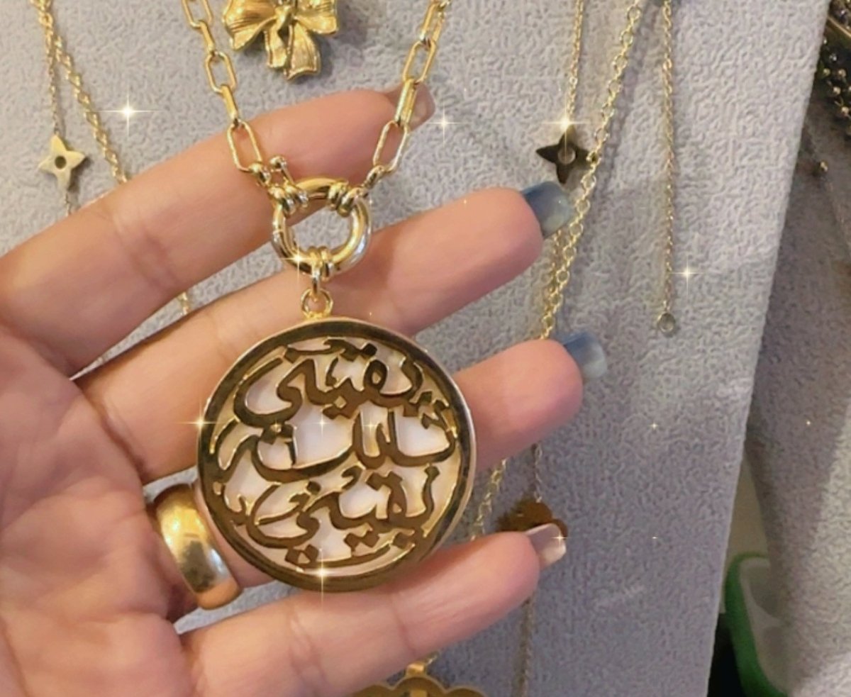 كوليه يقيني بالله يقيني نحاس مطلي دهب عيار ١٨ متاح تغيير لون الصدف
