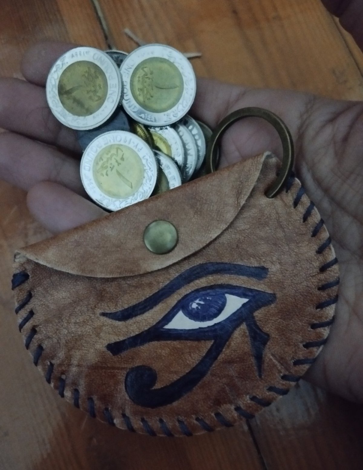 مادليه عملات جلد طبيعي هاند ميد وحظاظه الشنط مرسومه وملونه بصبغات الجلد الطبيعي قطر = ٩.٥ سم
