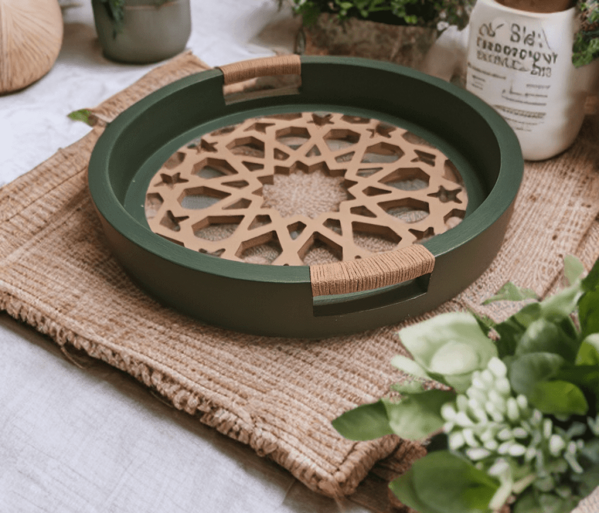 صينيه دائريه ديكوباج هاندميد بالزجاج قطر ٣٠سم
