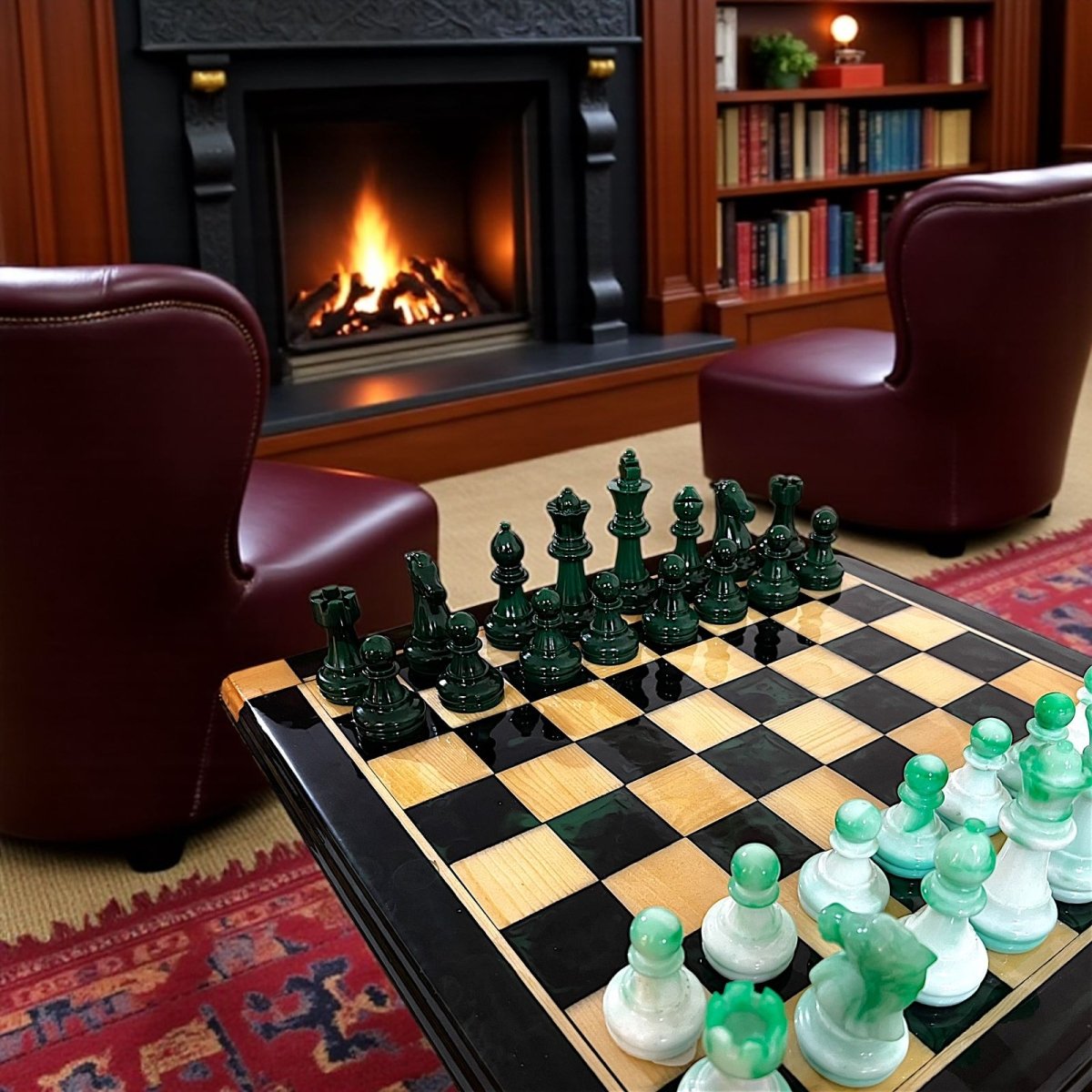 شطرنج من الريزن والخشب الطبيعي ، قطع الشطرنج حجم جامبو ، مقاس 47 سنتي .