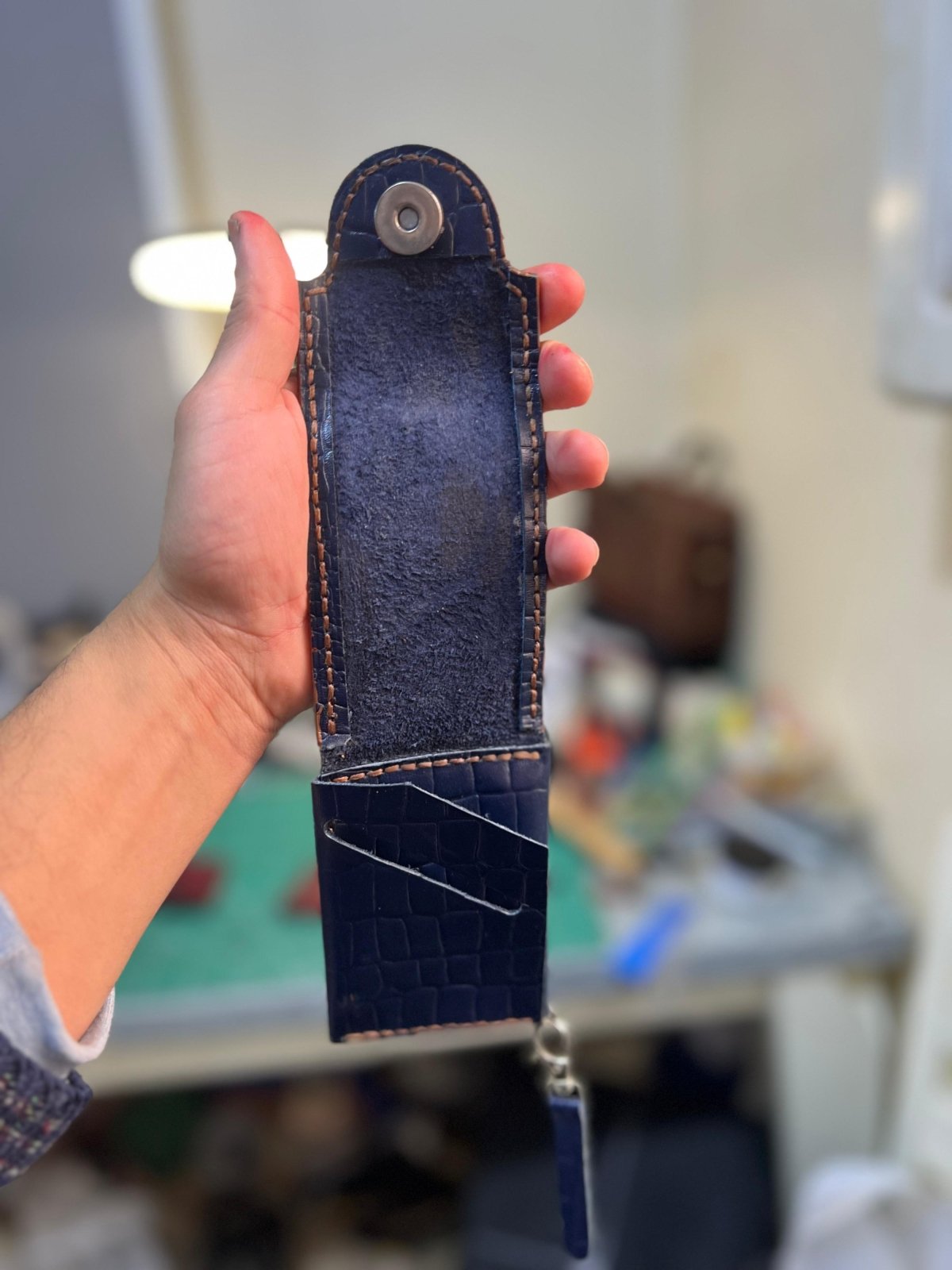 حافظة كروت من الجلد الطبيعي ب 3 جيوب امامية و 2 جيب خارجي . متاح تنفيذ اي لون حسب الاختيار .