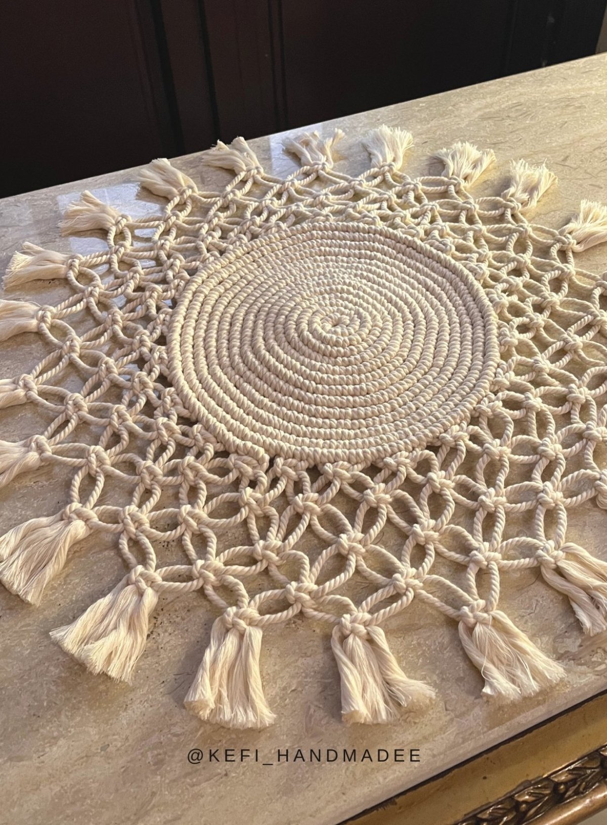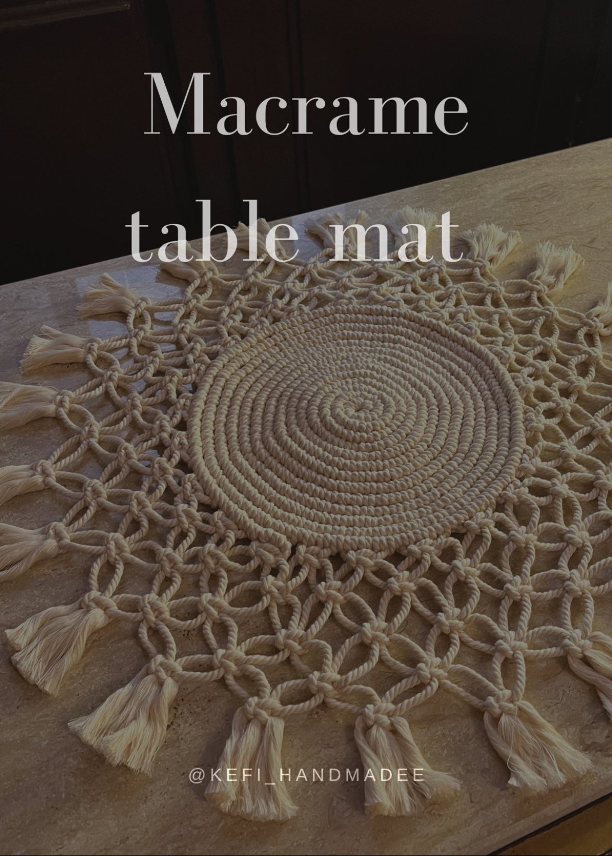 مفرش طاولة مكرميه مصنوع يدويًا بعناية، لمسة دافية وجميلة لكل بيت مقاس: ٥٠*٥٠