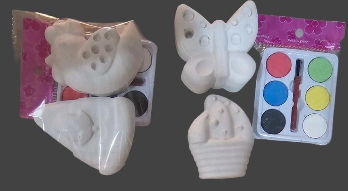 كونكريت اشكال تلوين للاطفال يمكن عمل اي عدد بتحديد وقت ويمكن اختيار اي شكلين ٦-٧سم مع علبه الوان ٦ لون