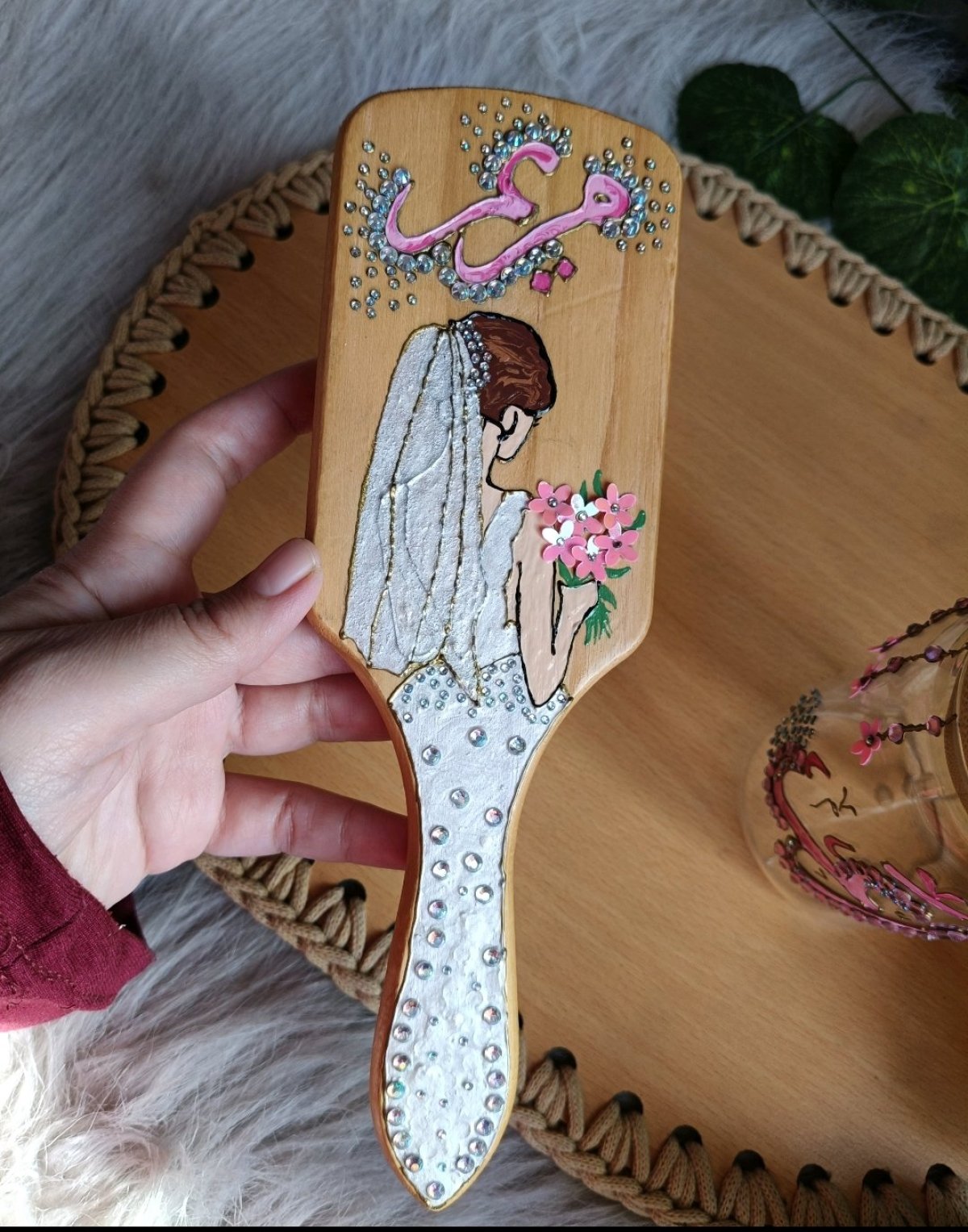 فرشة شعر خشب بالاسم وترصيع كريستال