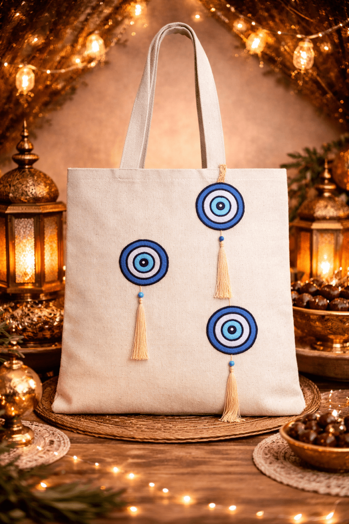 شنطة قماش فاخرة مصنوعة يدويًا من قماش الدك، بتفاصيل تطريز مميزة مستوحاة من الفن والتراث الرمضاني. أنيقة، عملية، ومتعددة الاستخدامات مثالية للاستخدام اليومي، أجواء رمضان، وكهدية للأصحاب. المقاس: 40 سم عرض * 45 سم طول طول اليد: 60 سم