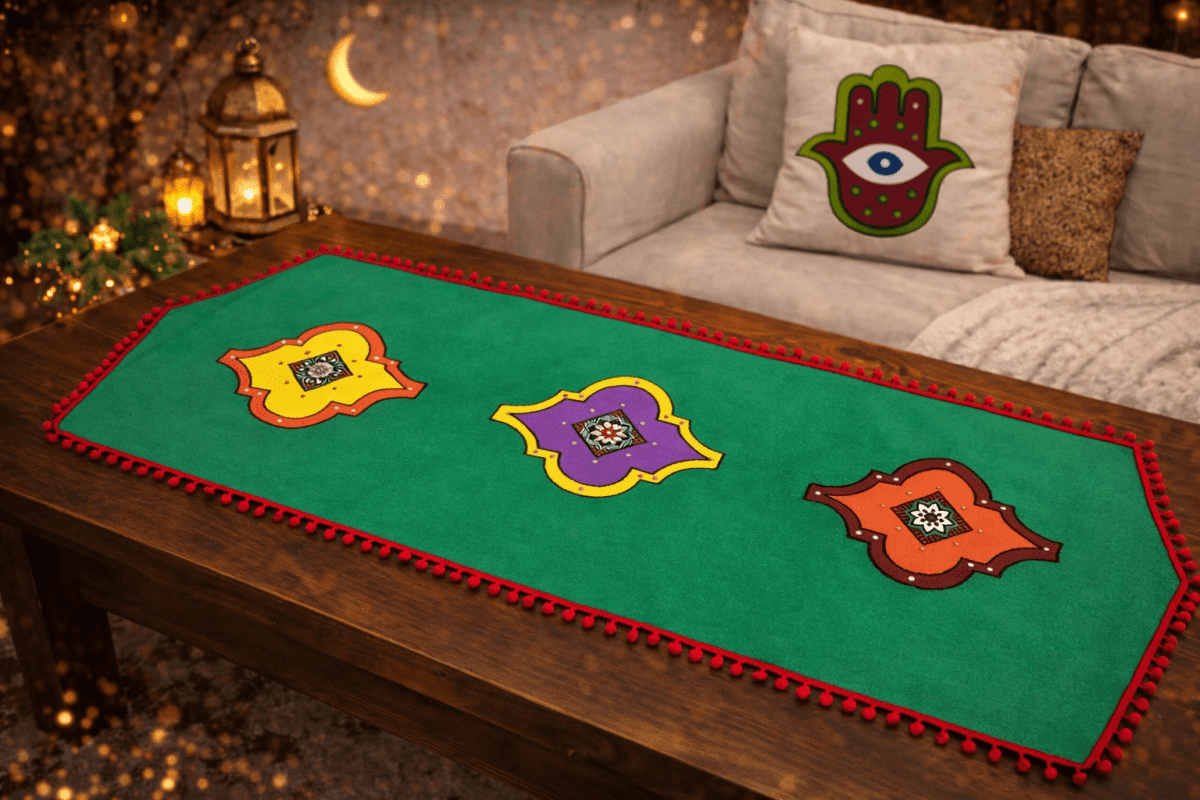 مفرش سفرة فاخر من قماش الدك بتصميمات رمضانية أنيقة مستوحاة من أجواء الشهر الكريم. يضيف لمسة دفء ورُقي لسفرة الإفطار والسحور، ويحوّل كل تجمع إلى تجربة رمضانية مميزة.