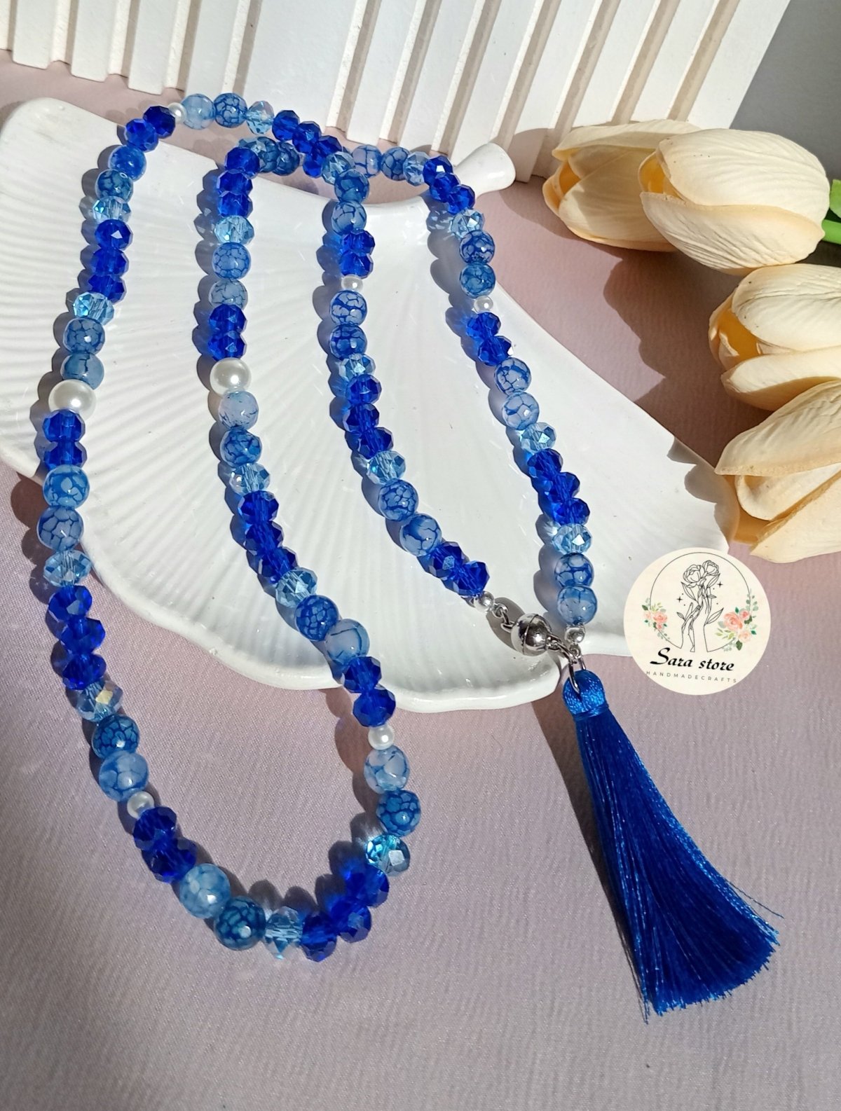 سبحة مكوّنة من 99 حبّة ميكس بين العقيق وخرز الكريستال، مزوّدة بفواصل لولي تضيف لمسة أنيقة ومميّزة. تأتي بقفل مغناطيس عملي يسهّل استخدامها بطرق متعددة؛ يمكن ارتداؤها كسلسلة، أو لفّها على اليد كأساور، كما يمكن تعليقها في السيارة. قطعة 4×1 تجمع بين العملية والأناقة، بخامة عالية الجودة ولمسة هاند ميد مميّزة تناسب كل الأذواق.