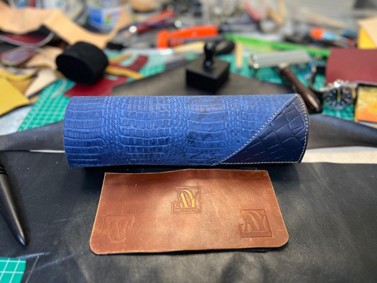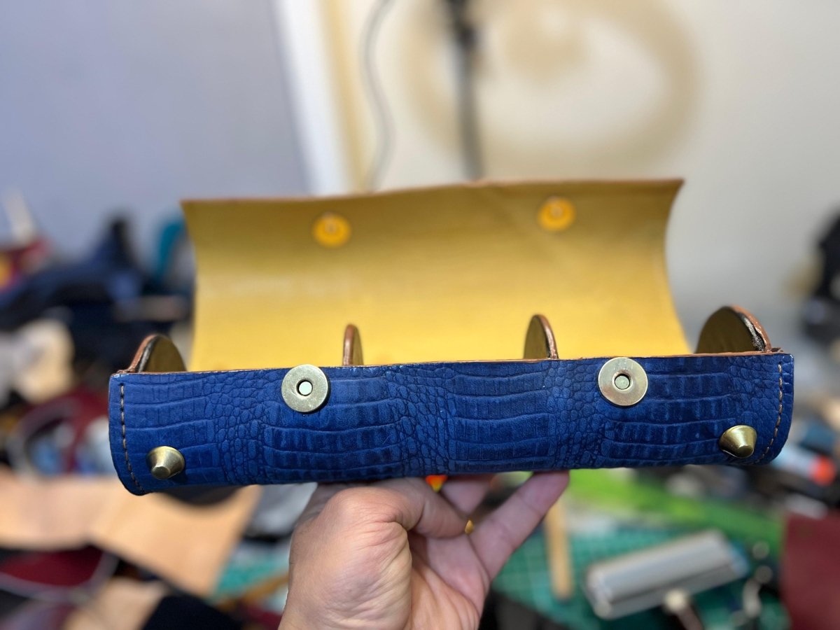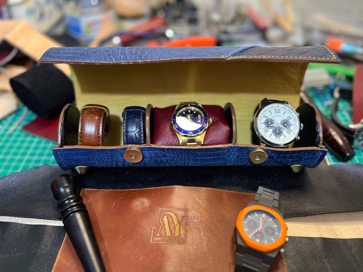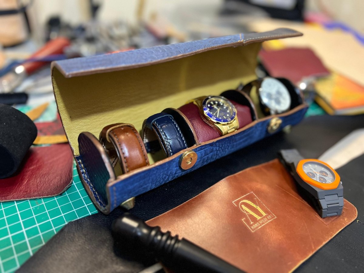 حافظة ساعات يد جلد طبيعي بالكامل خياطة يدوية مع بطانه من جلد الماعز الشمواه ، المقاسات عرض 25 في ارتفاع 7 سنتي