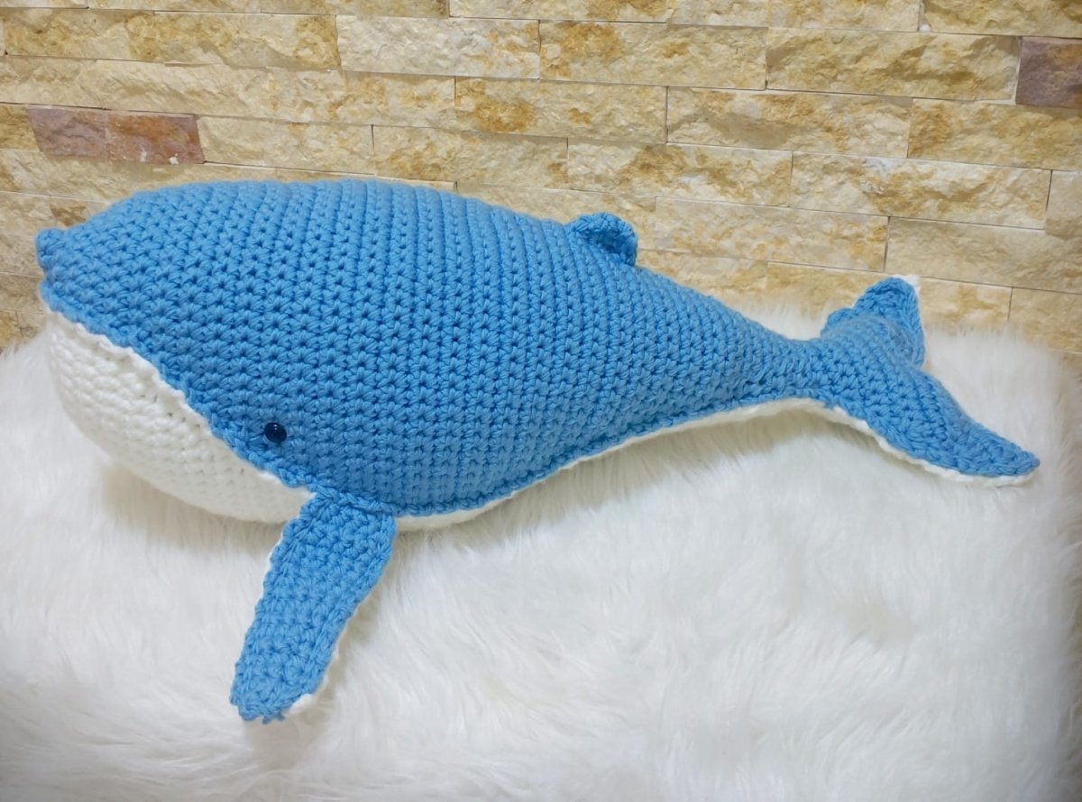 حوت ...طوله حوالى ٥٠ سم مصنوع من خيوط ضد الوبره و أمن للأطفال