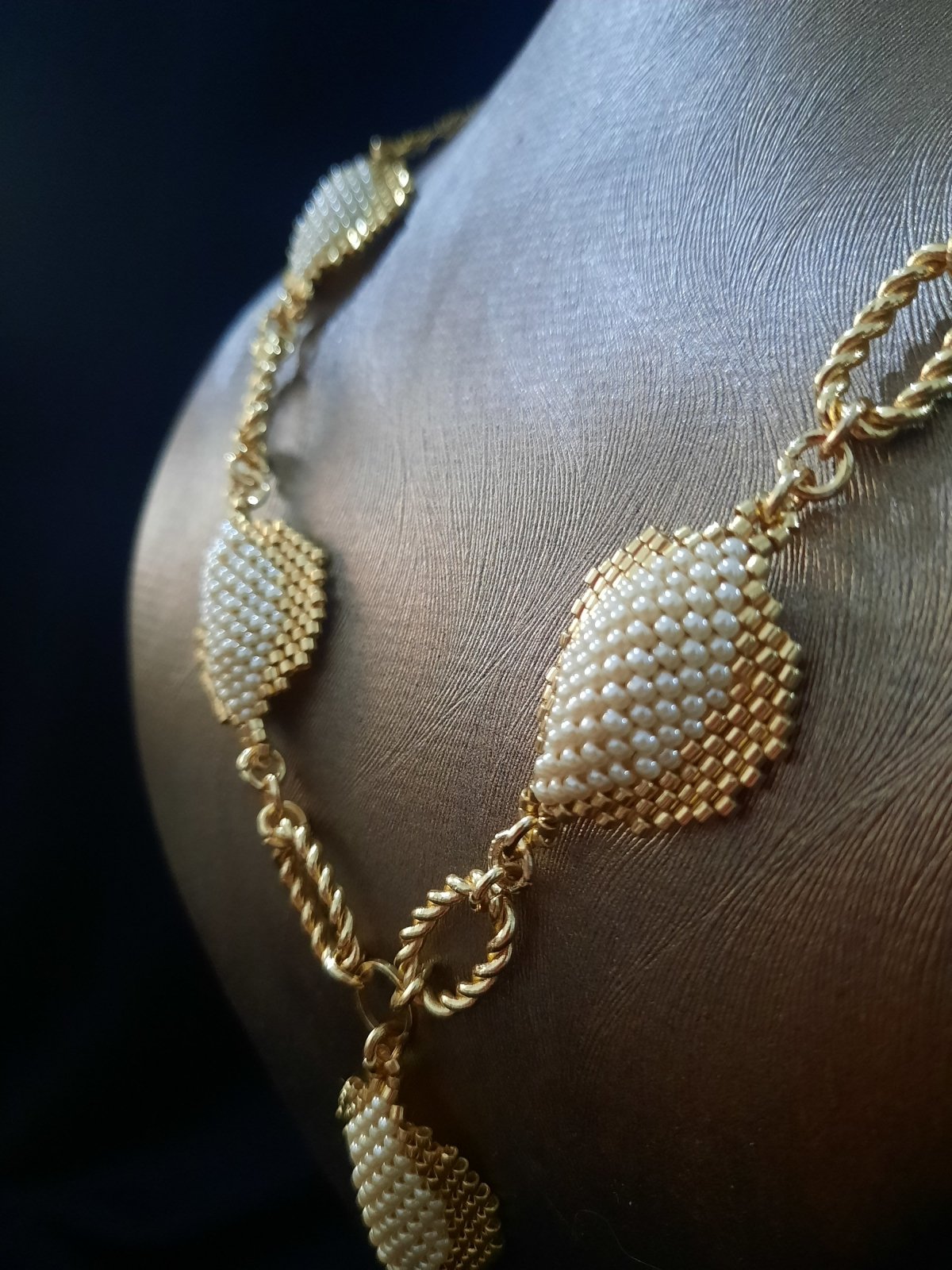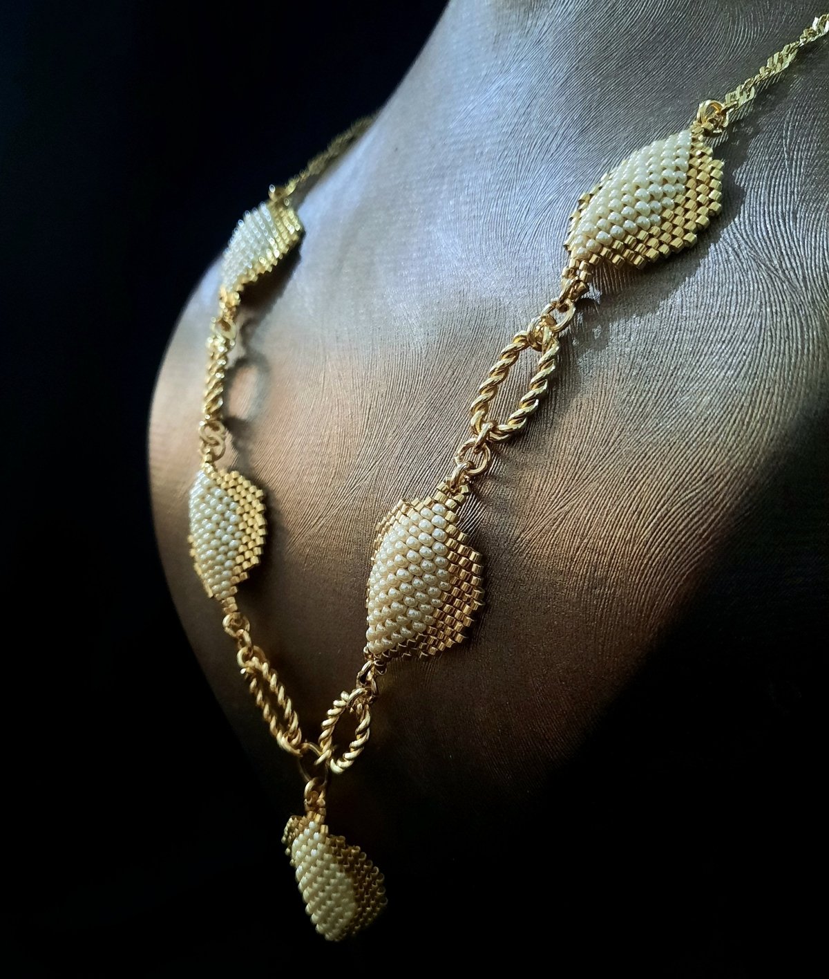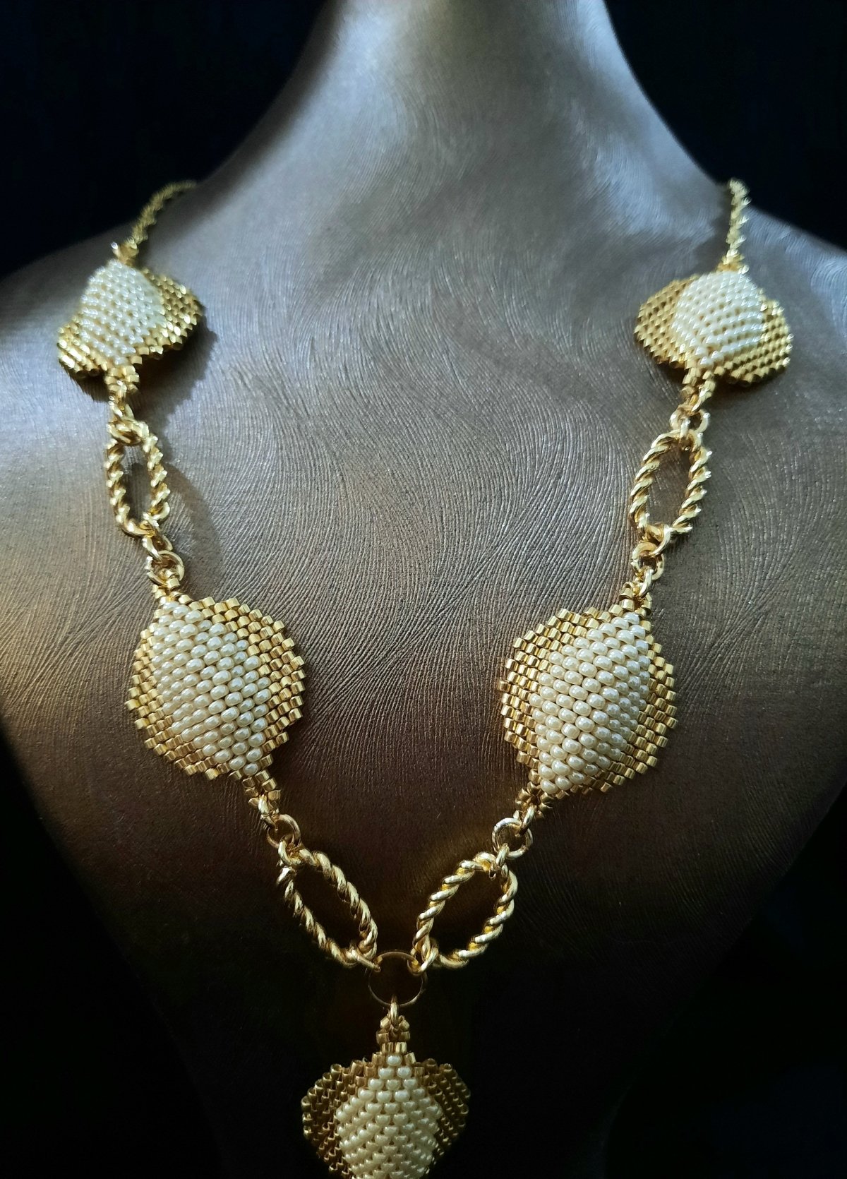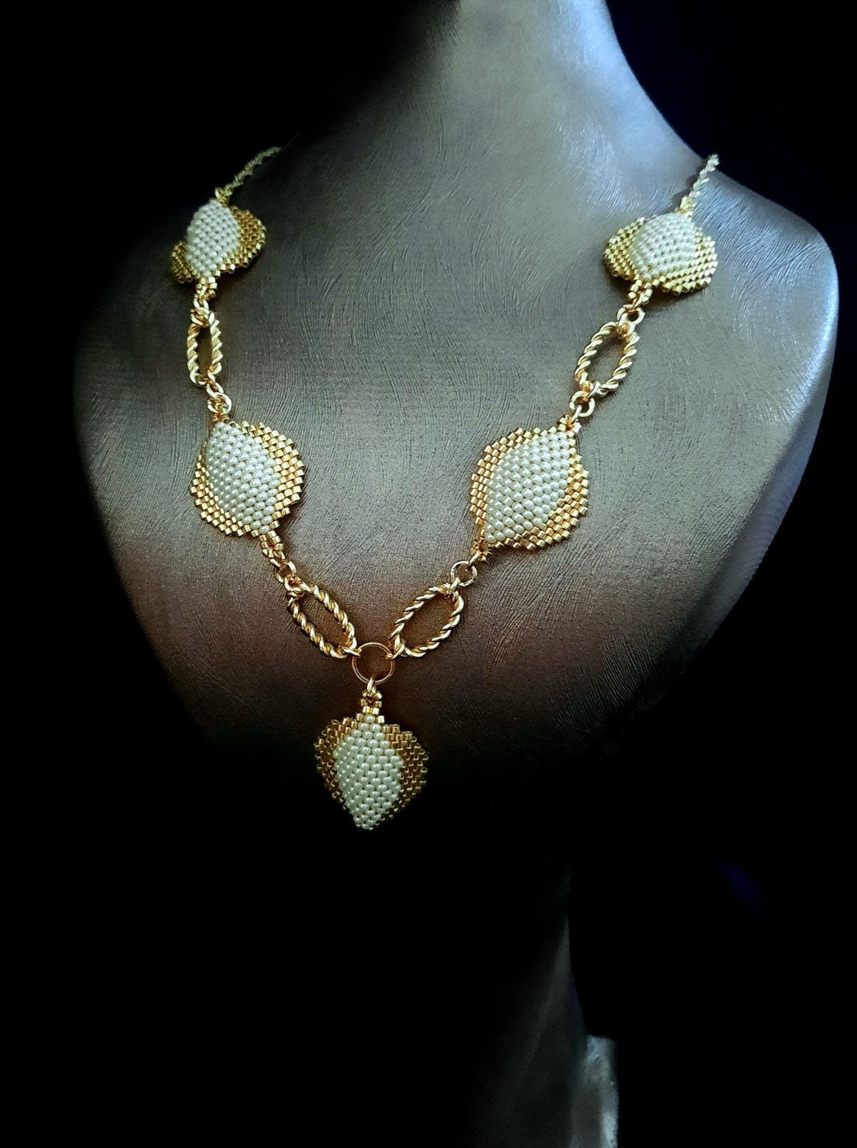 عقد بوحدات مميزة بلون اللولى والذهبى من خرز الميوكى