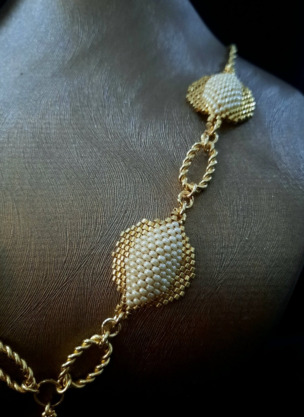 المقاس: عقد بوحدات مميزة بلون اللولى والذهبى من خرز الميوكى