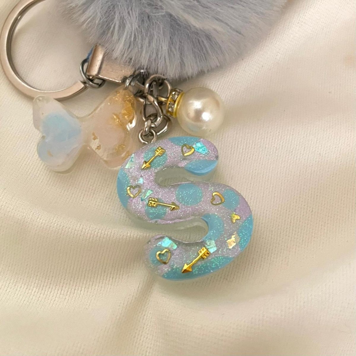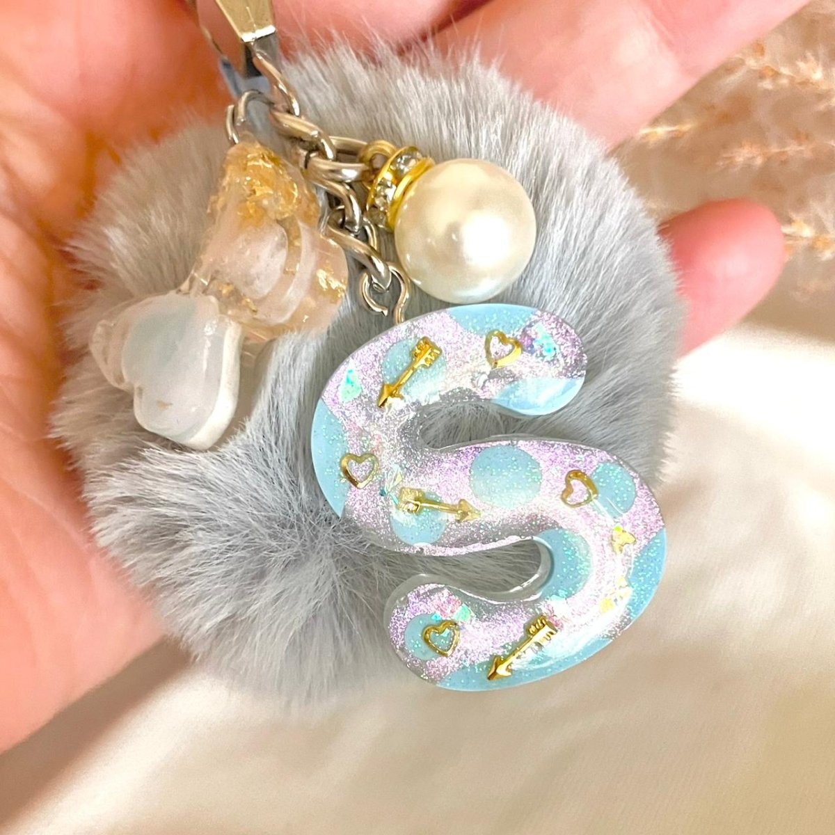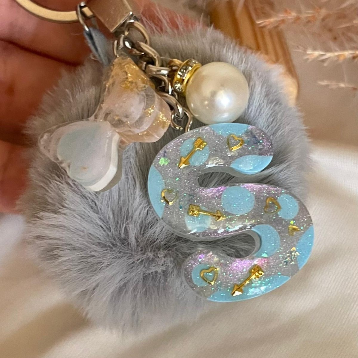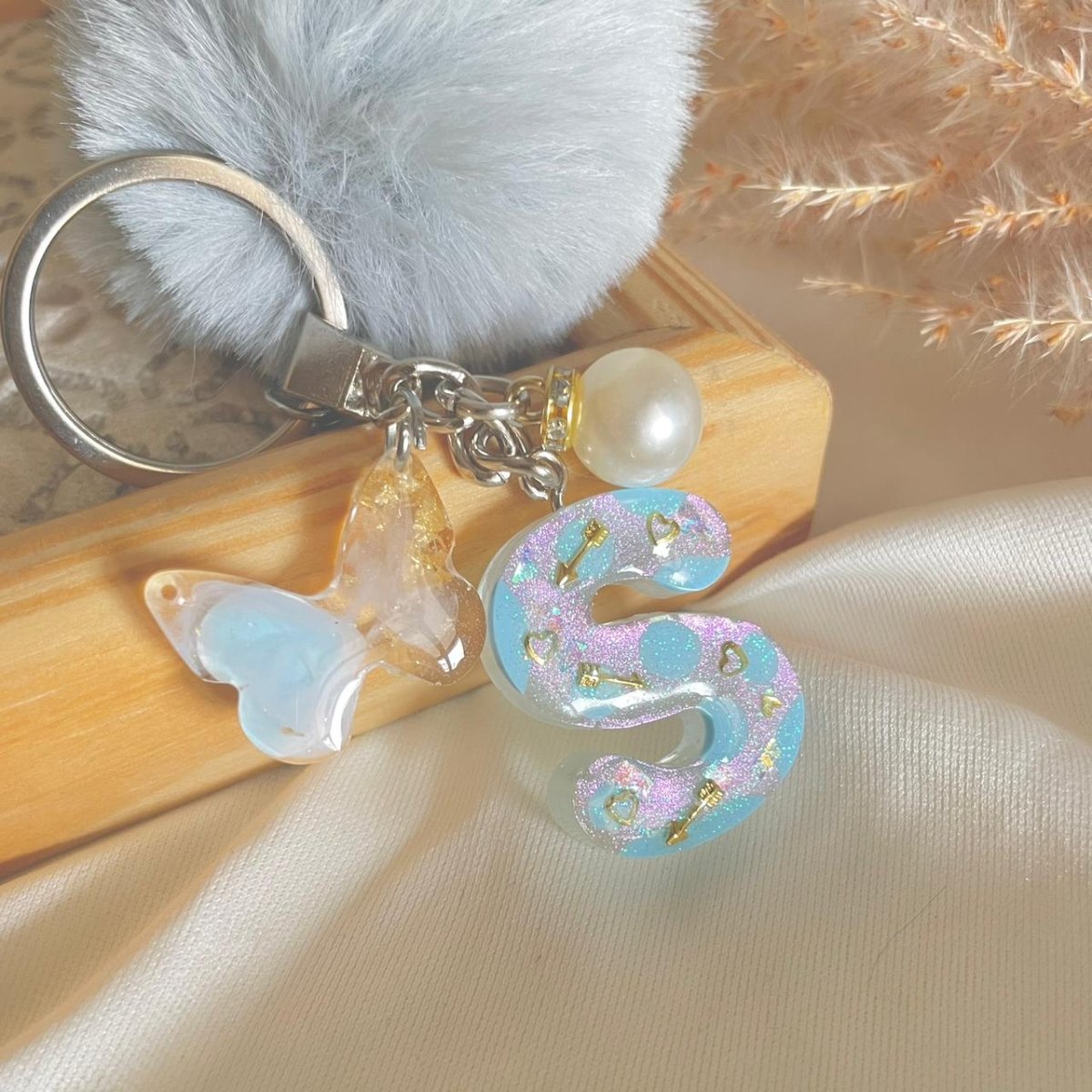ميدالية حرف مقاس وسط مع فراشة ولولي وكرة فرو