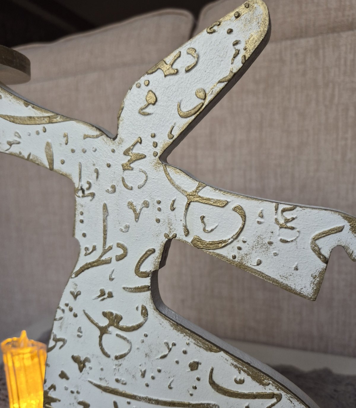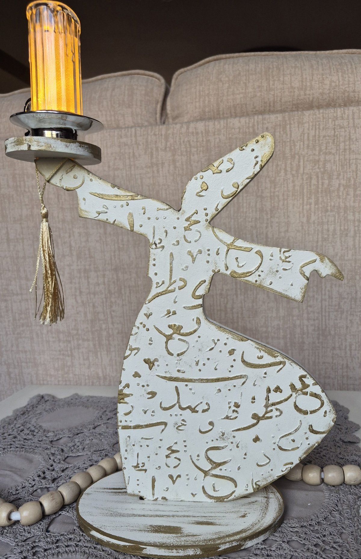 شمعدان صوفي باللون الاوف وايت و اللمسات الذهبي و تكنيك الملامس