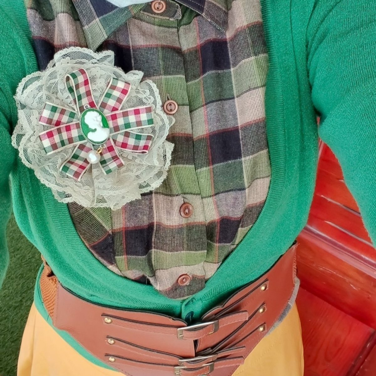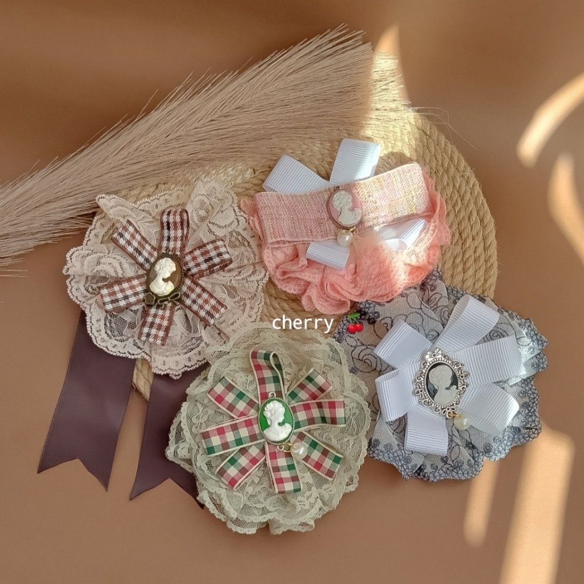 كاميو بروش ..بصوره سيده داخل برواز معدنى ومزين بالدانتيل الفرنسى ..وفى منطقة الظهر دبوس مشبك