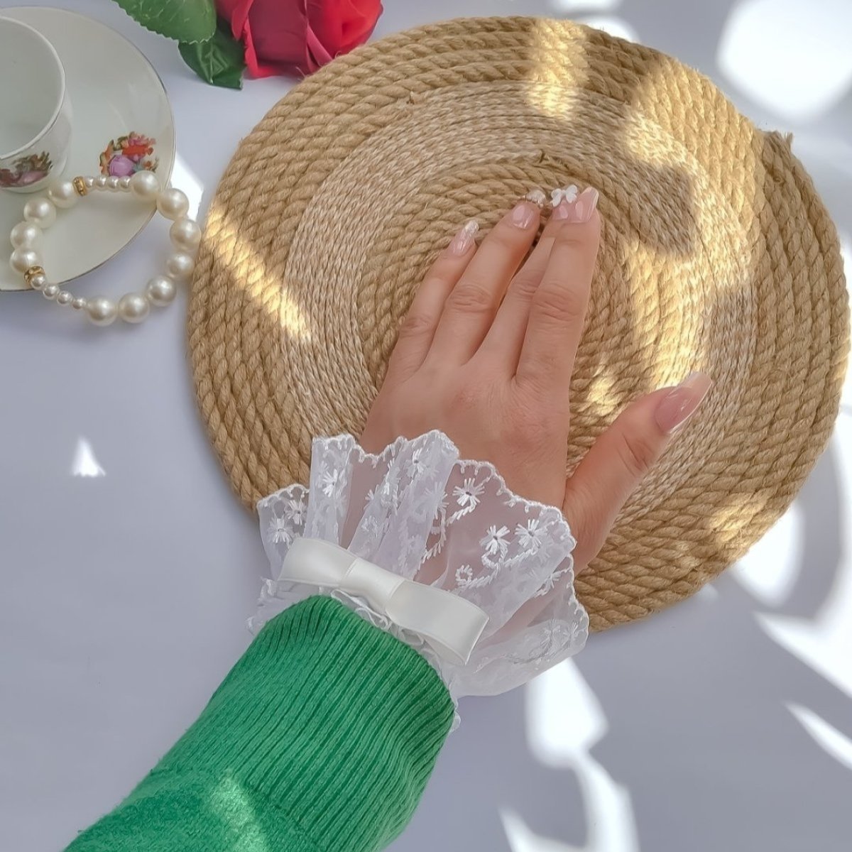 كم طويل مكمل حجاب أنيق لتغطئه الذراع ..وبلمسه راقيه من الدانتيل مع فيونكه ستان