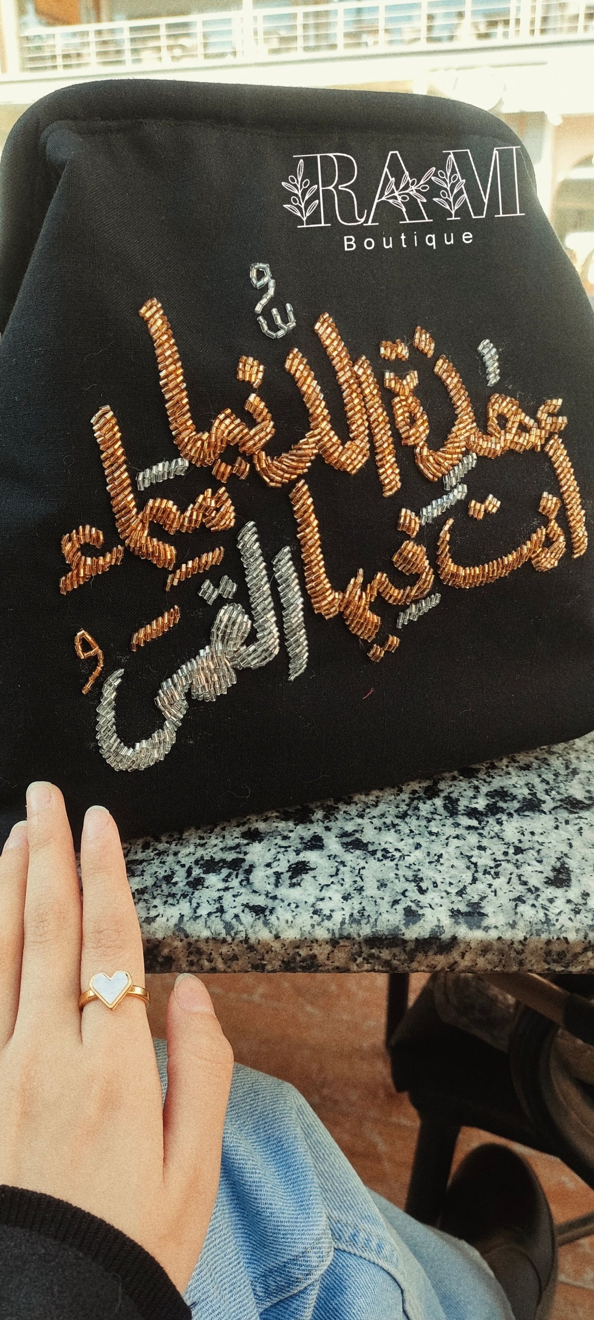 شنطة كلاتش من الكتان التركي كلمات اغنية ام كلثوم فريم معدن بطانه قطن مقاس ٣٠*٢٠*٢٥