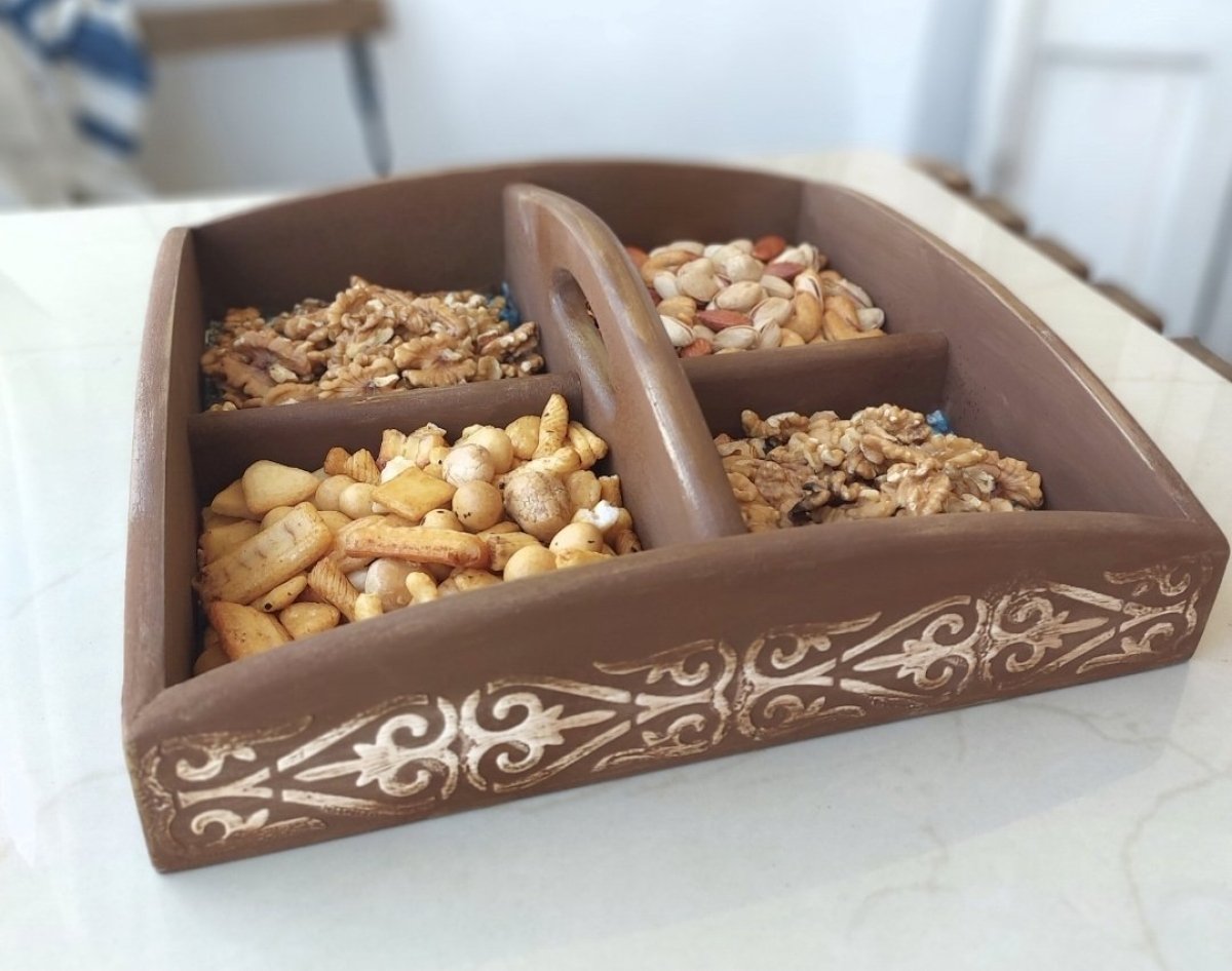 صينية مكسرات فريده مصنوعه من الخشب و بتكنيك الملامس