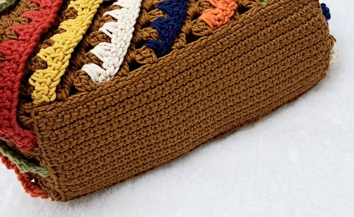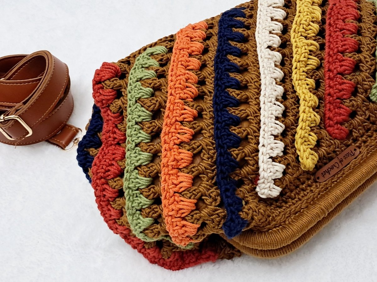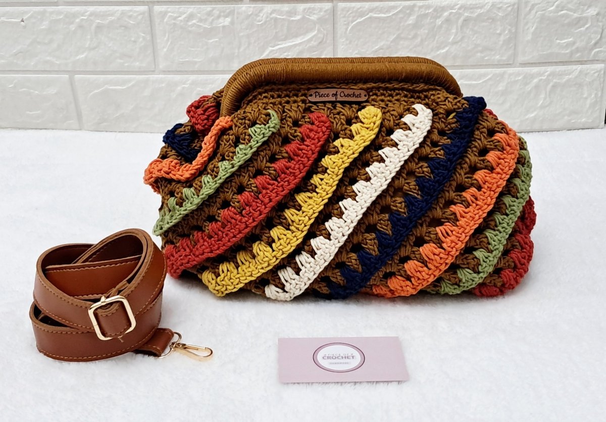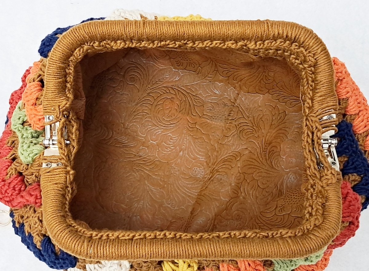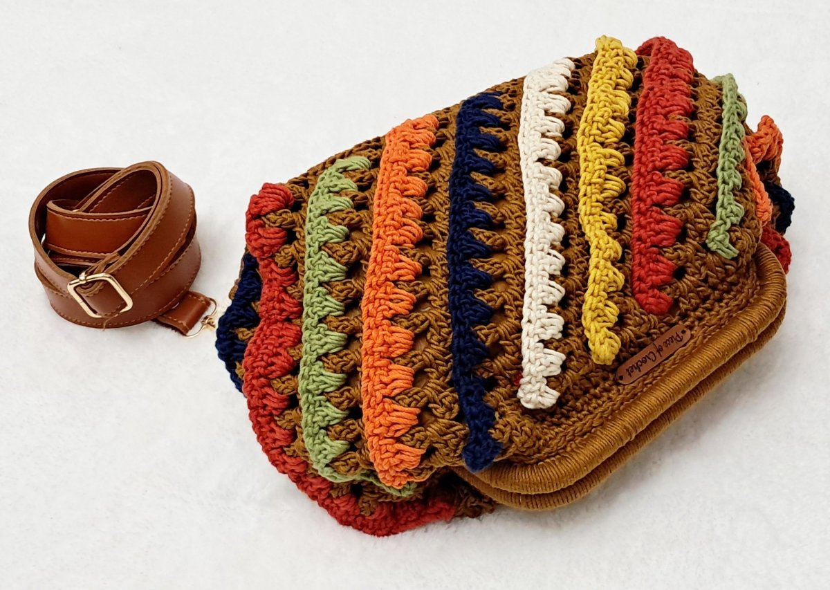 شنطة كروشية أنيقة مشغولة بخيوط قطن جودة ممتازة وبالوان مناسبة لأى خروجة . مقاسات السنطة الارتفاع ٢٢ سم والعمق ٢١ سم والعرض ٣٧ سم وعرض القاعده ١١ سم وطول القاعده ٢٥ سم والفريم قفل الشنطة ٢٠ سم الشنطة مبطنة من الداخل .