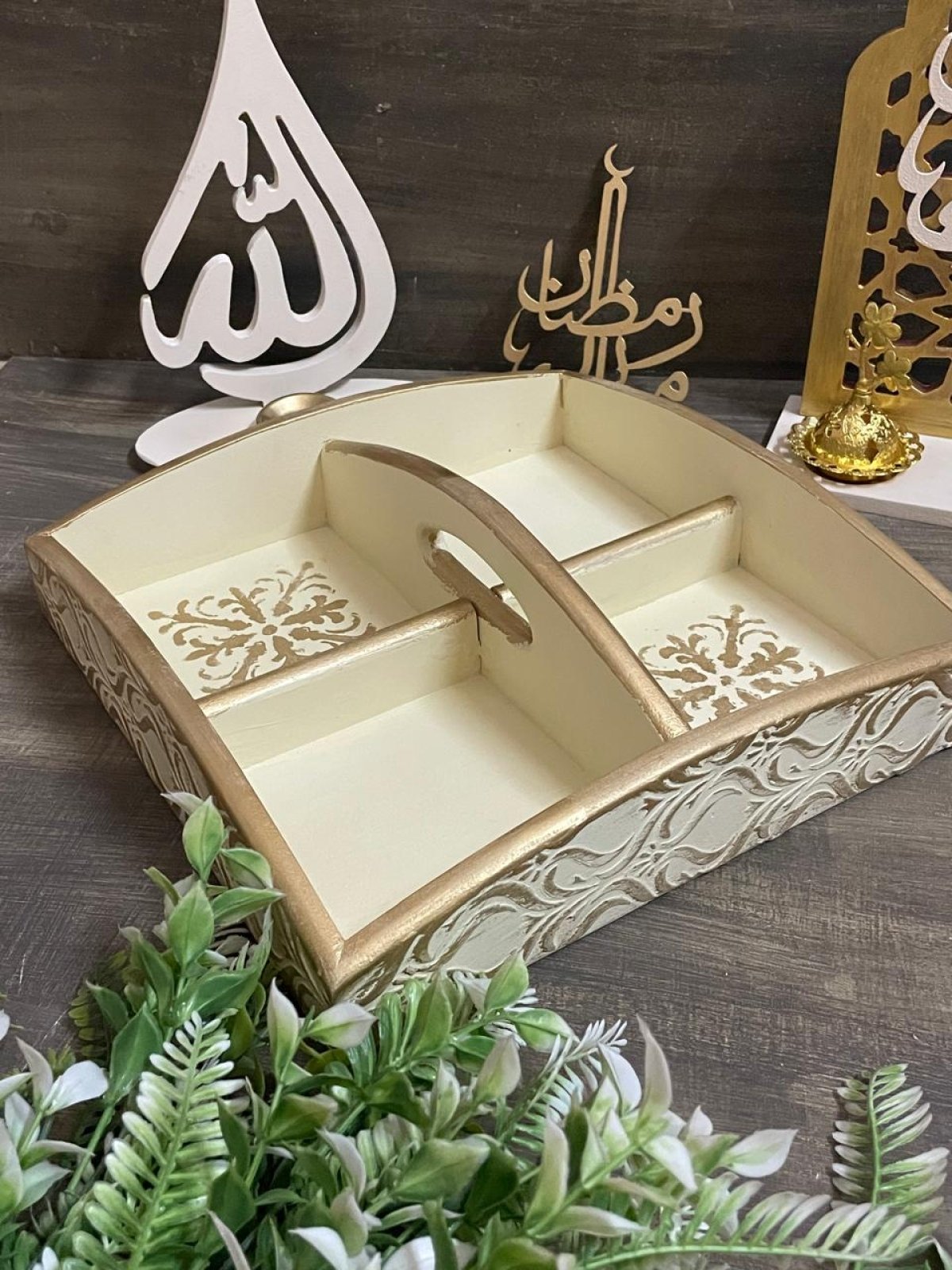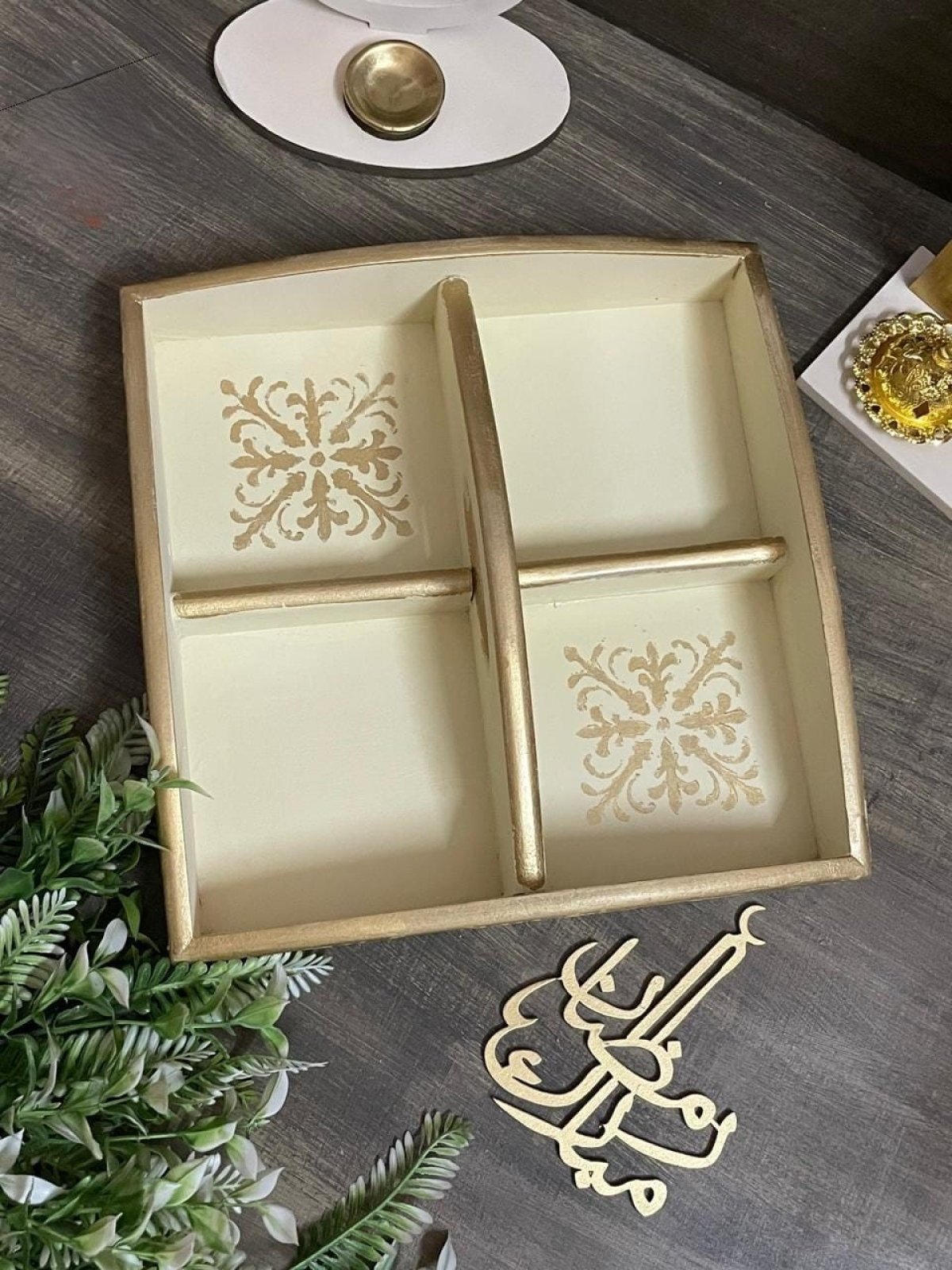 صينيه مكسرات صينية رباعيه من الخشب للمكسرات و التسالى الشغل الجانبي بارز مقاس 30 سم * 30 سم اللون بيد * اوكسيديه