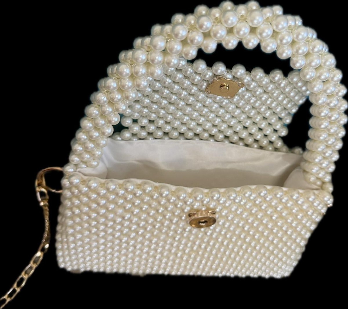 شنطة خرز مقاس كبير يكفى موبايل و محفظة و عدة أشياء مع حزام ذهبى و حزام عريض من الخرز و حلقات سهلة الفتح و مغناطيس للغلق و مبطنه ستان من الداخل