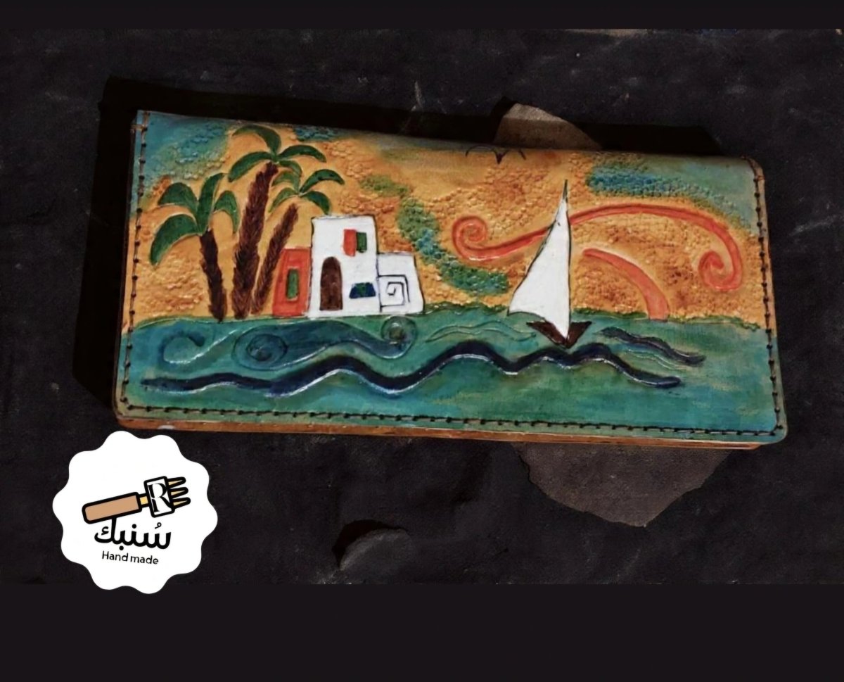 شنط ومحافظ جلد طبيعي مصنوعة يدويا بكل حب