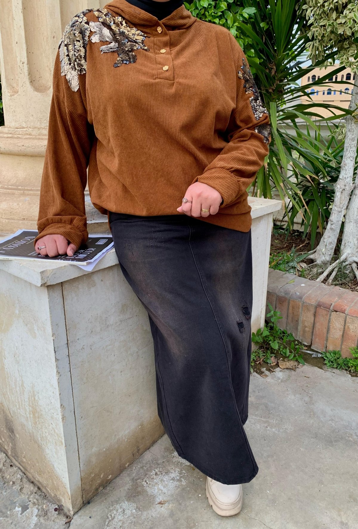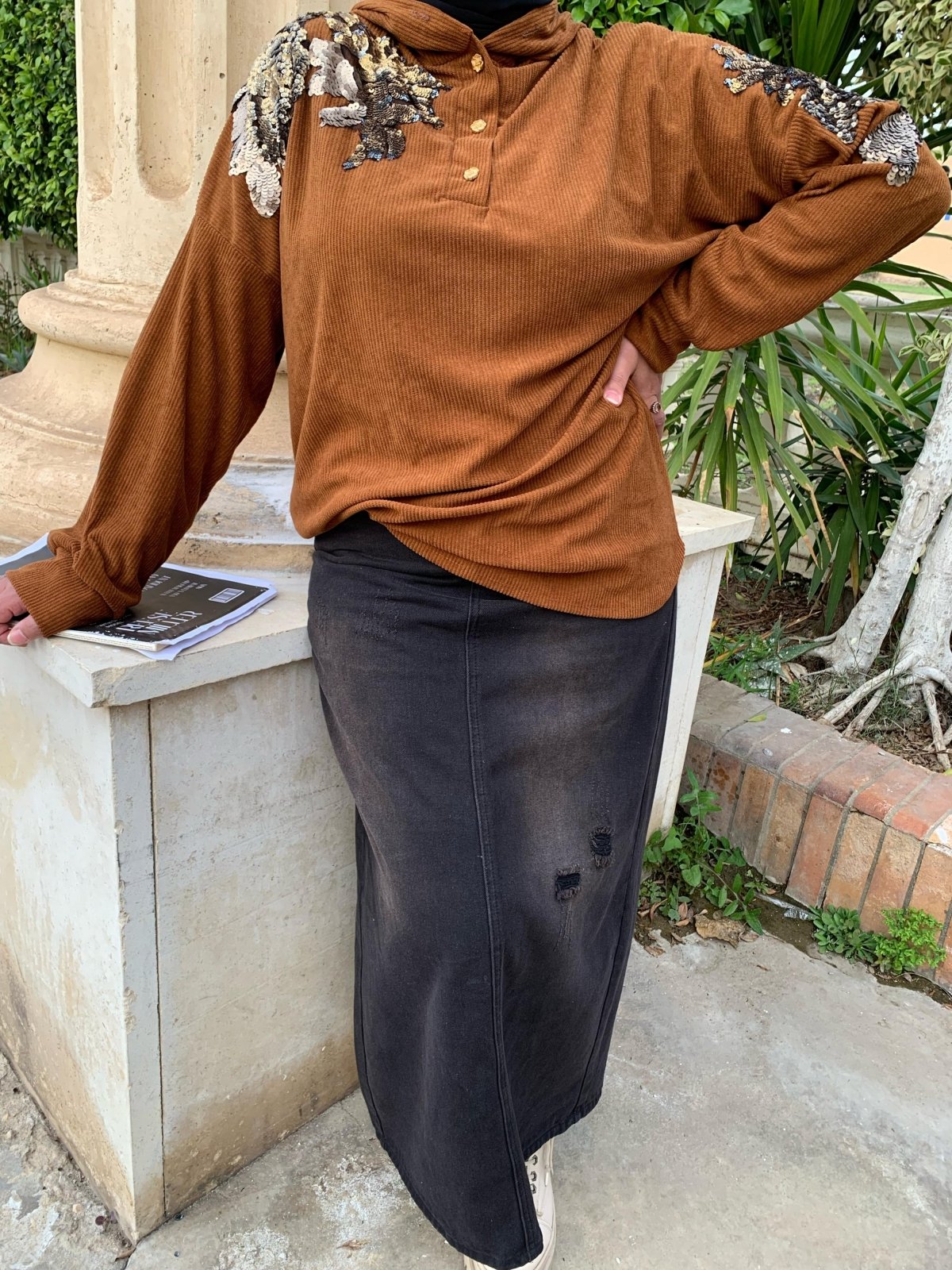 سويت شيرت خريفى من القطيفة مطرز ورد بالنحاسى والذهبي مع ازرار ذهبى