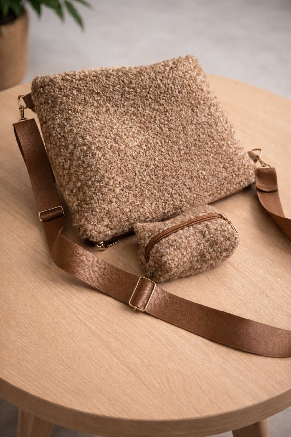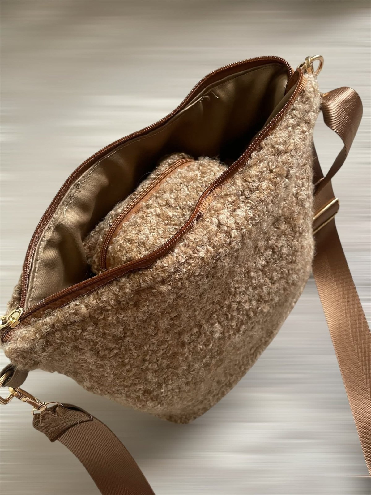 حقيبه من القماش البوكليت المستورد صنعت يدويا لها بطانه من الداخل ولها دراع كروس مقاس 35/30
