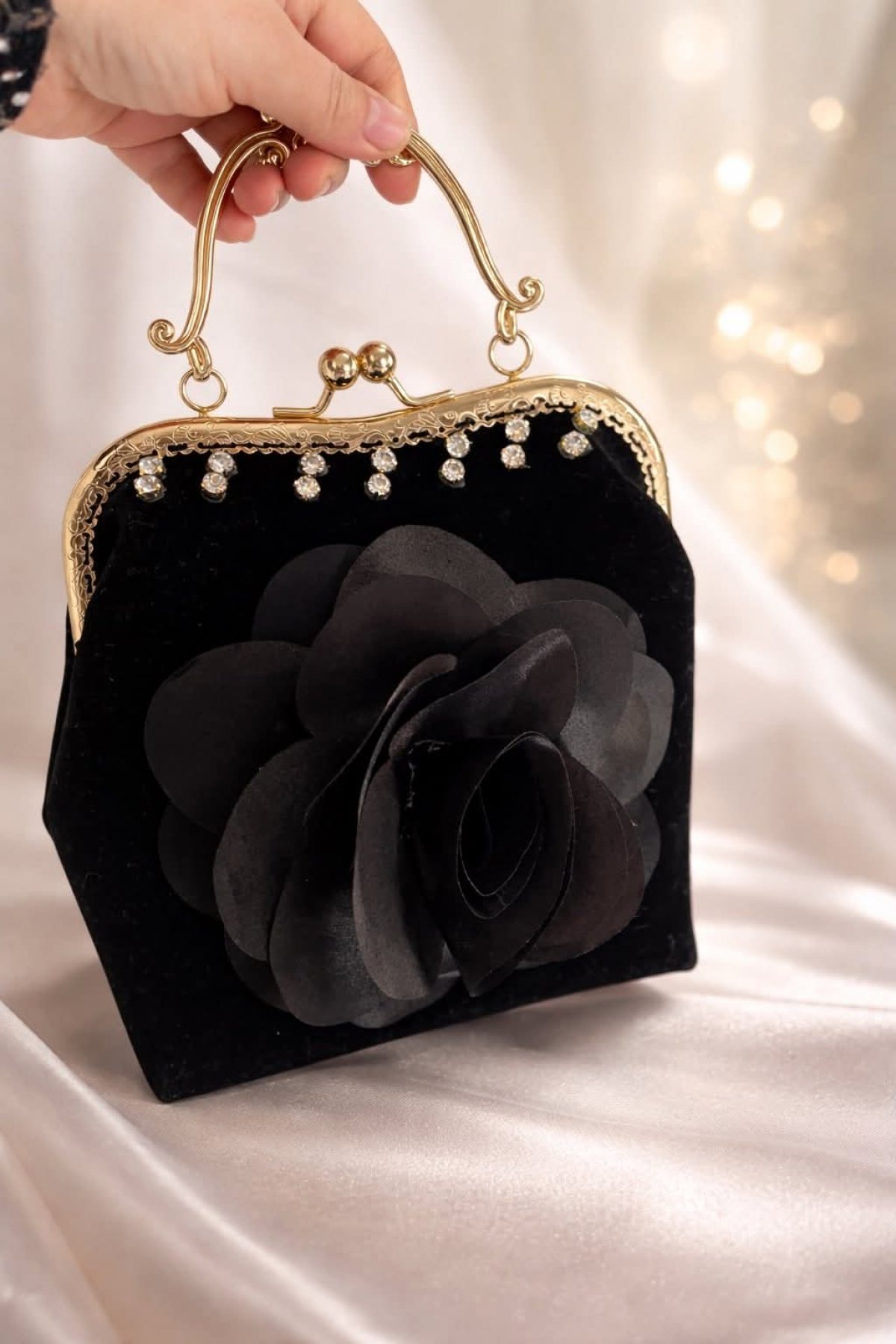 حقيبه سواريه صنعت يدويا من القماش الشمواه مدعم ببوري من الداخل لها بطانه من الستان التركي علي فريم من المعدن مقاس 20 ولها دراع من السلسله متاح جميع الالوان