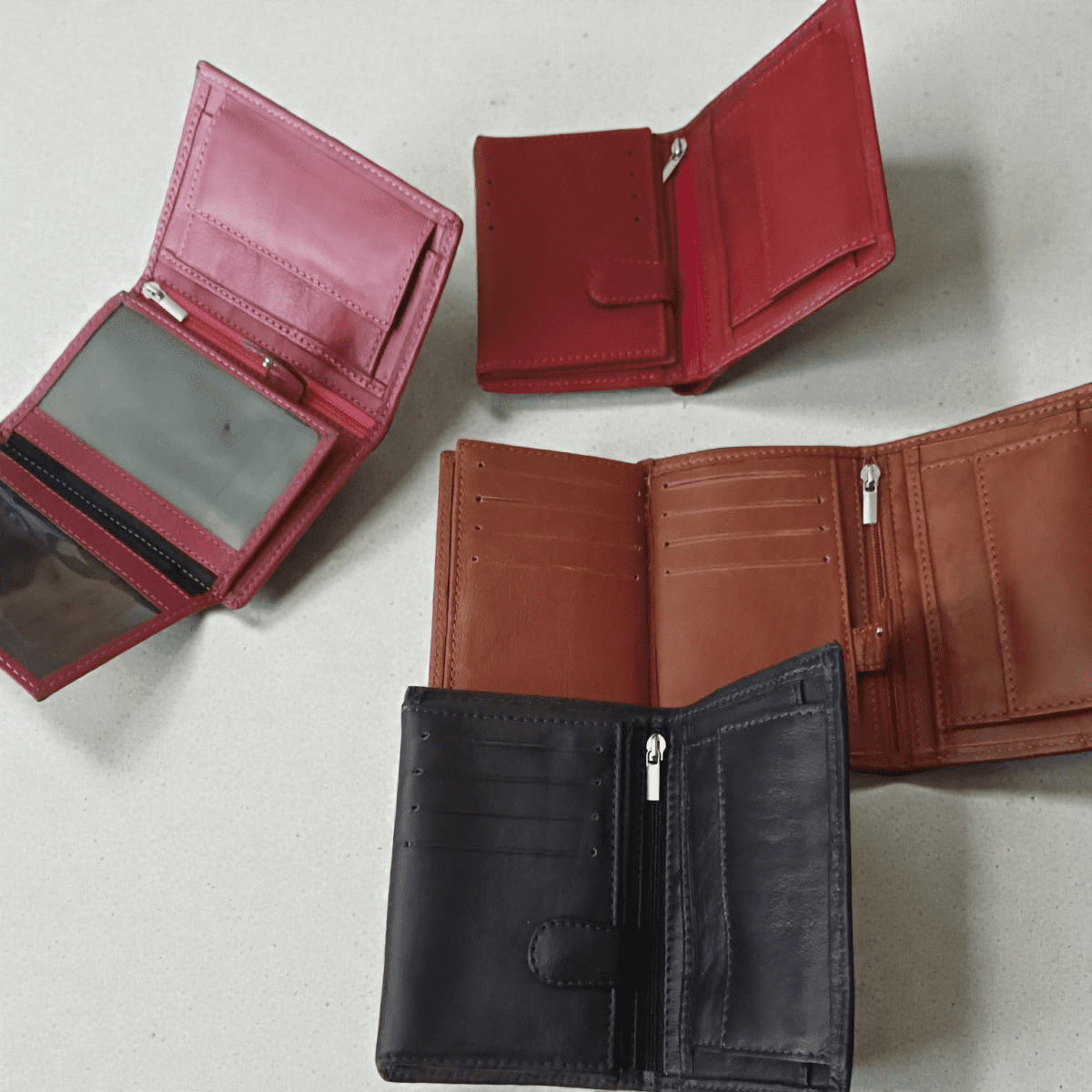 محفظه حريمى جلد طبيعى هاندميد ١٤ جيب كروت جيب للنقود الورقيه جيب للكوينز تغلق بكبسونه متاح الوان متعدده