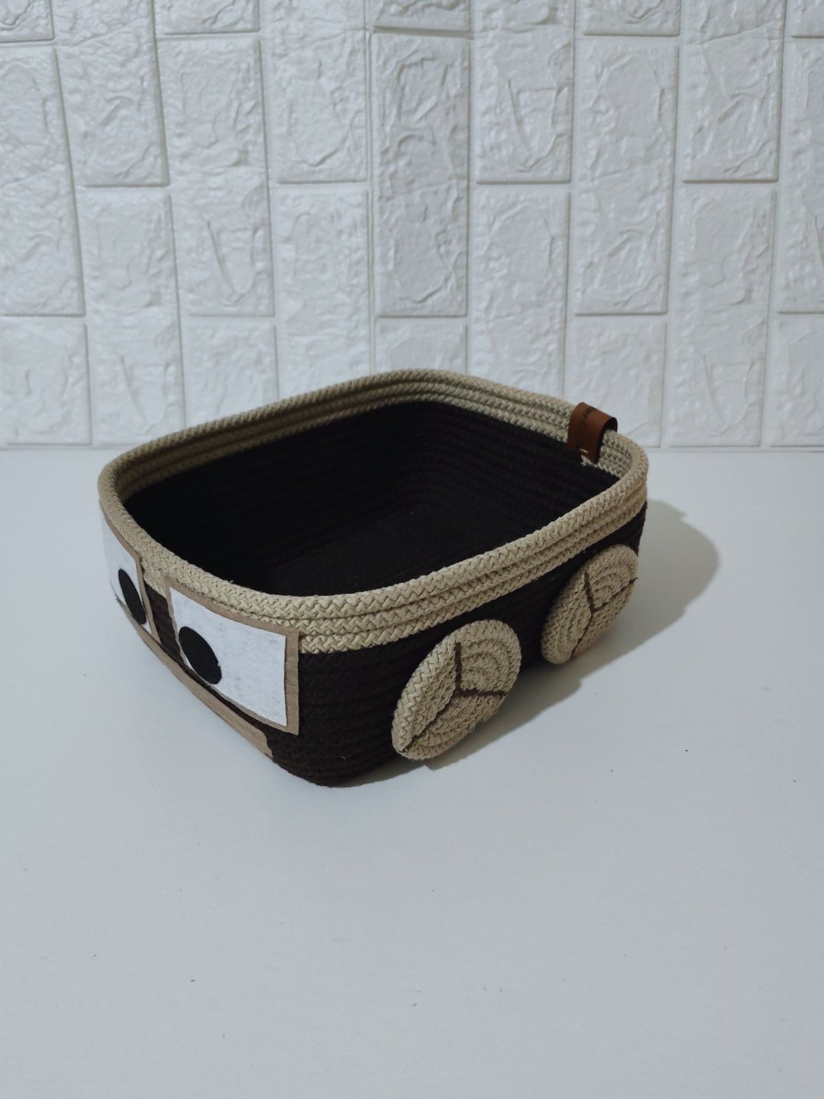 باسكت منظم شكل عربيه مصنوع من خيوط الكوردون القطن متعدد الاستخدام يمكن استخدامه فى غرف الاطفال ، للمكياج ، للاكسسوارات ، وللعديد من الاغراض المقاس القاعده ٢٠*١٥ سم الاعلى ٢٧*٢١ سم الارتفاع ١٠ سم يمكن تغير المقاس واللون حسب الطلب