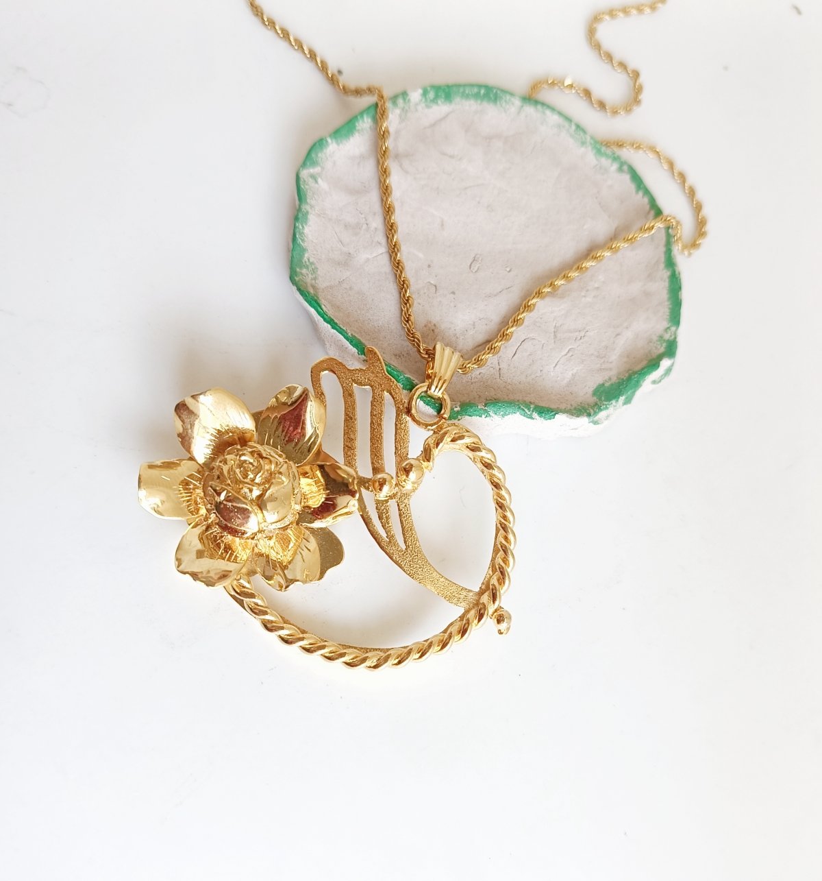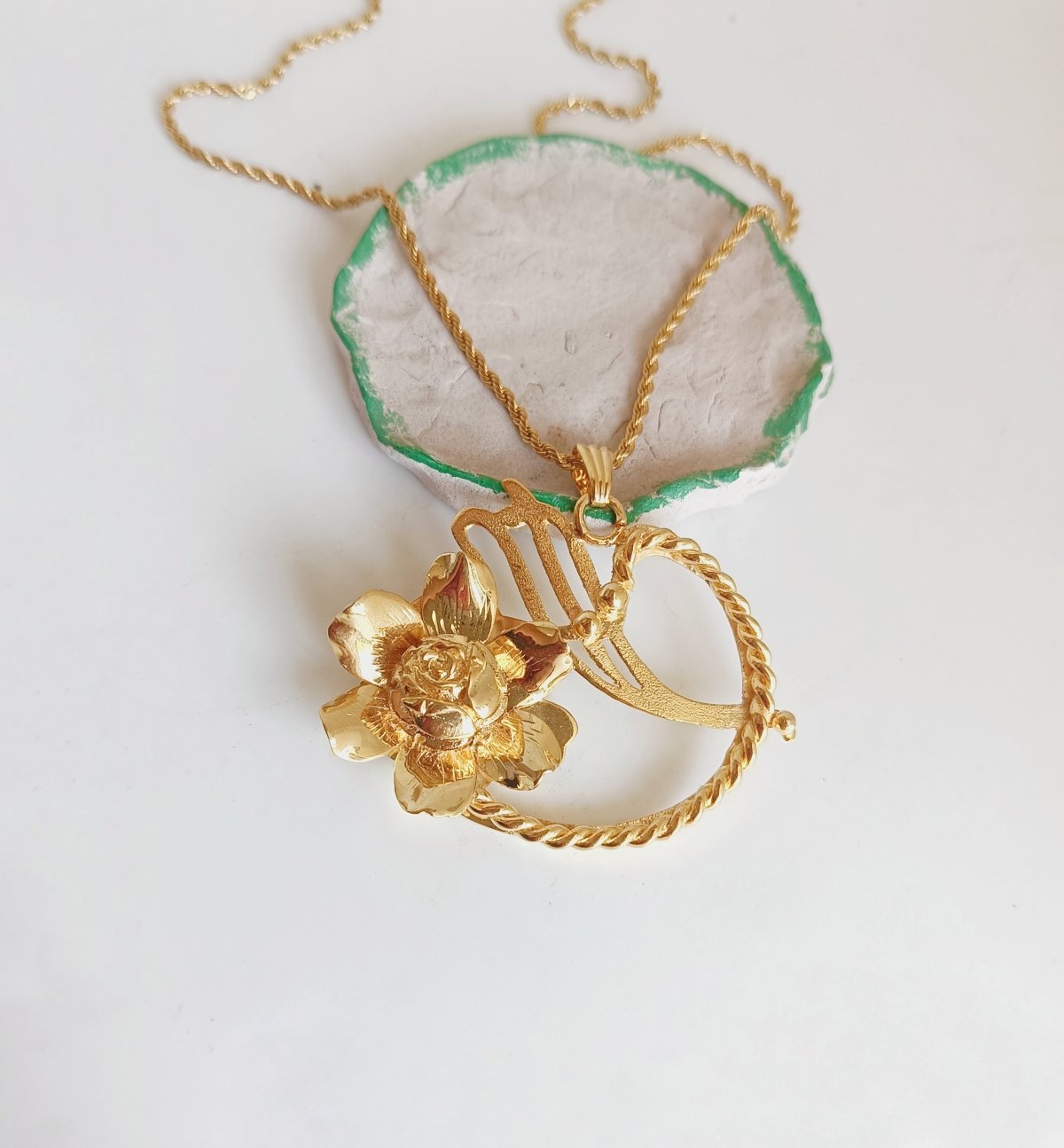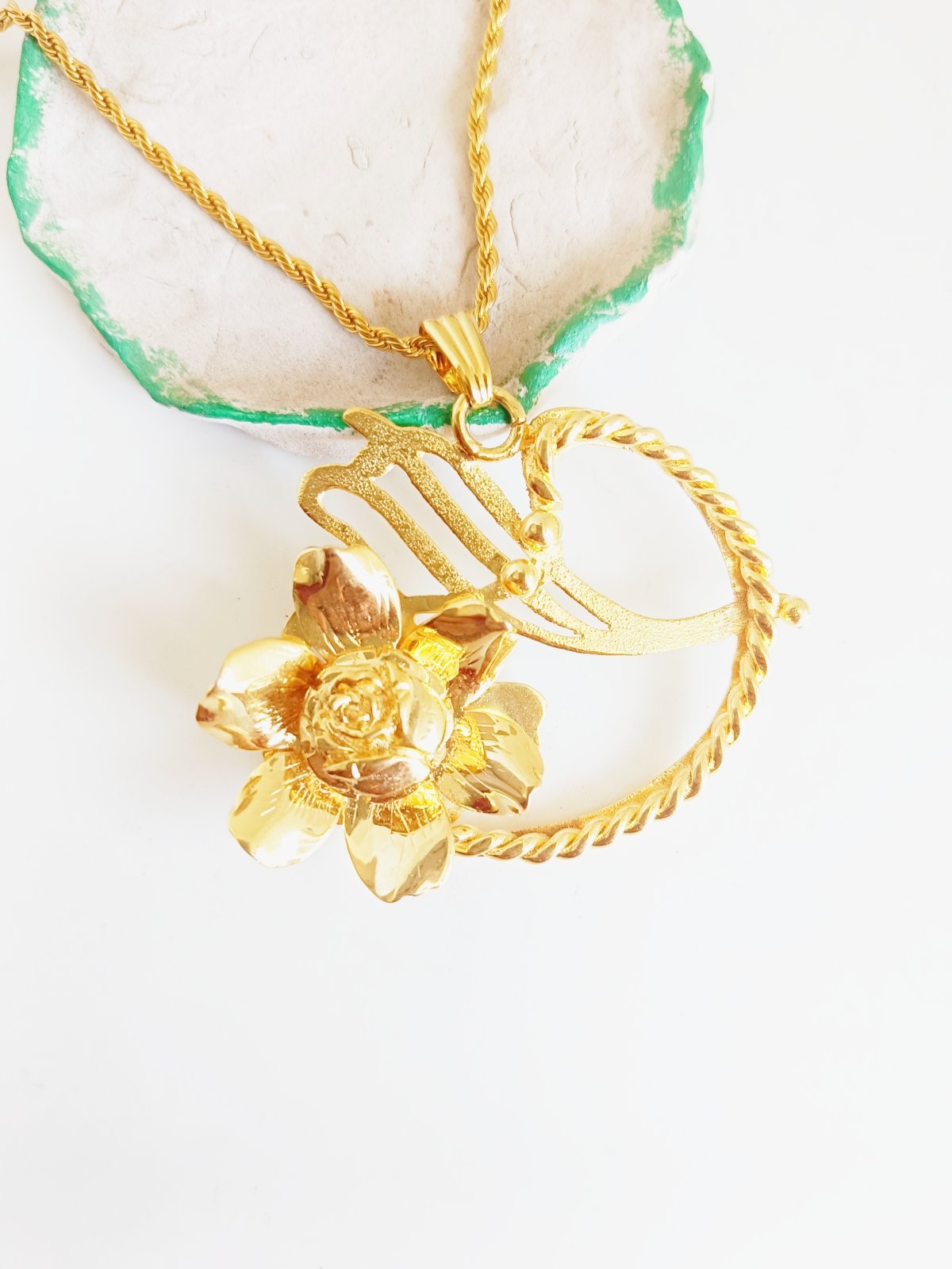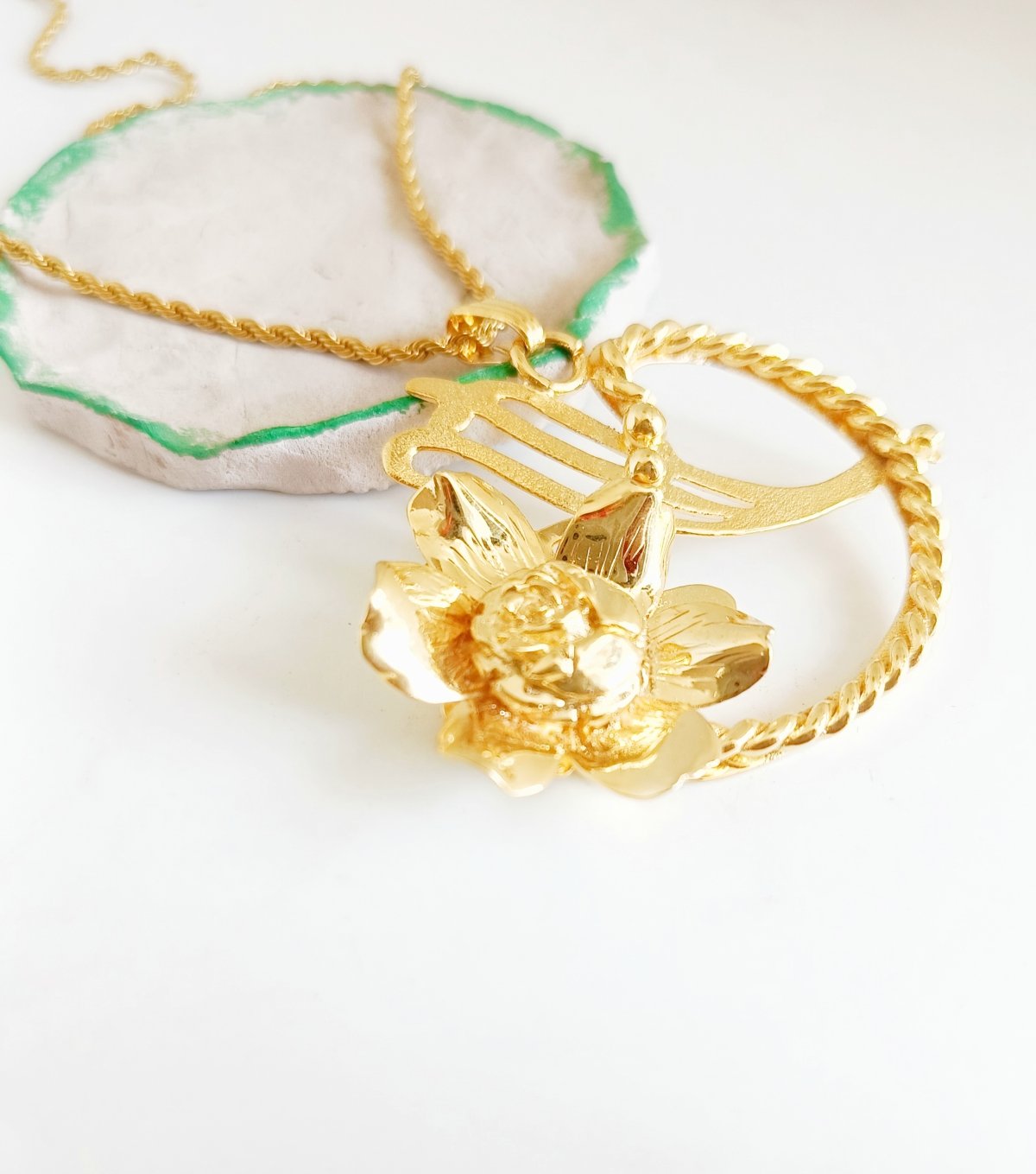 قلادة من النحاس المطلي بماء الذهب، مصنوعة يدويا. ابعاد القلادة 5*5 طول السلسلة 50 إرشادات يراعى عدم تعرض المنتج للماء.