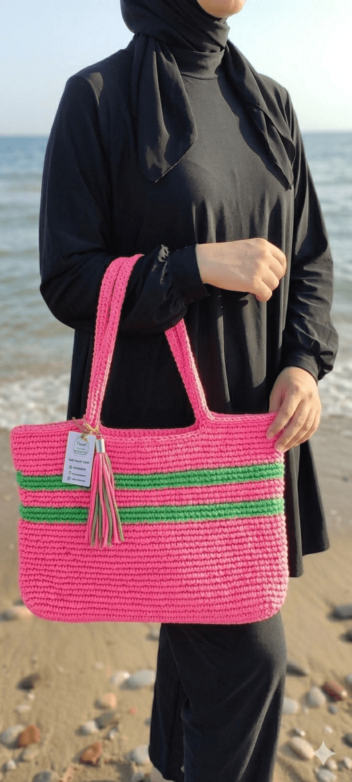 حقيبة كروشيه مصنوعة من خيوط القطن، مقاس 40*40
