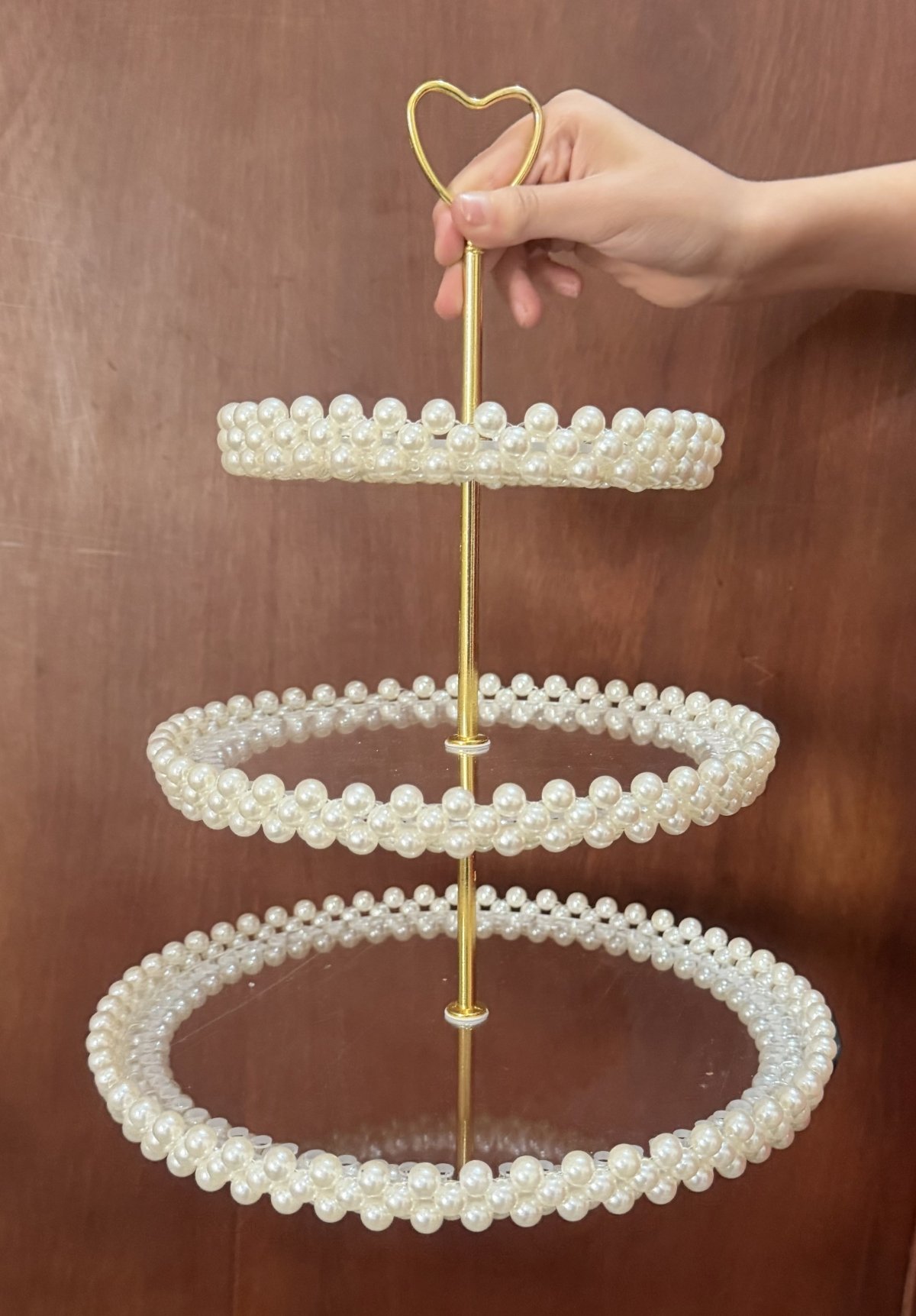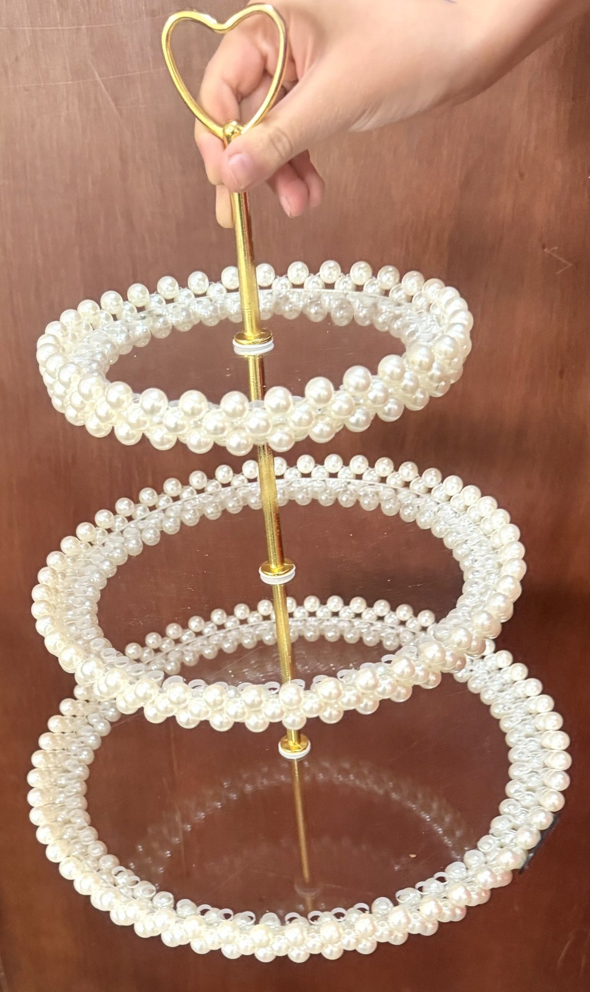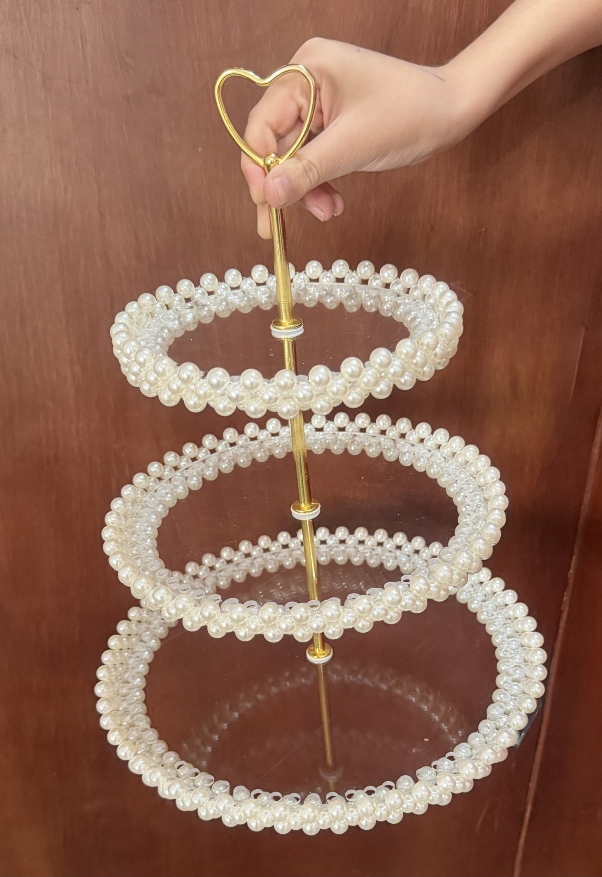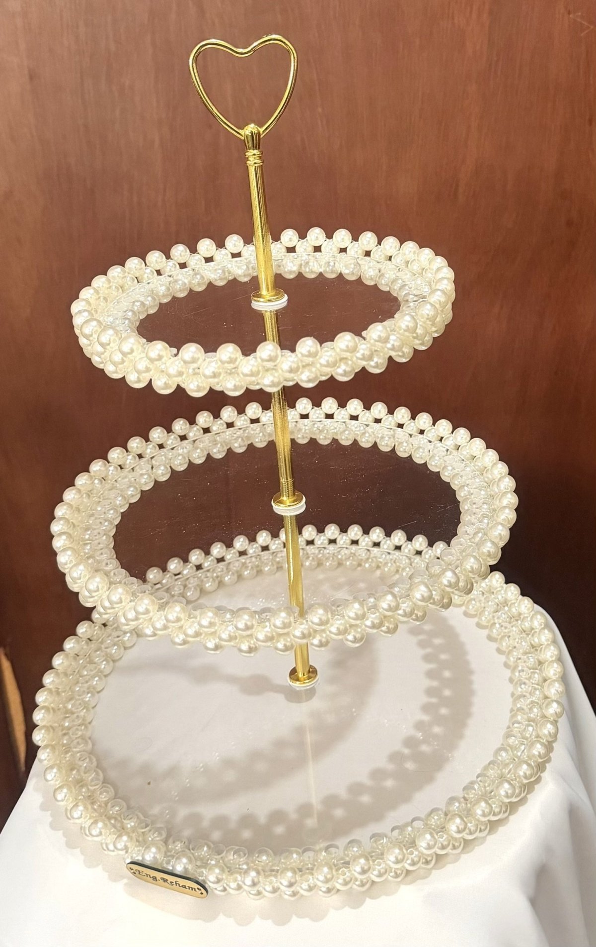 شيالة تقديم الكحك مصنوعة يدويًا ب اللولى عالى الجودة سى سى بى مع الأكريلك السميك و عمود من المعدن الذهبى اللون