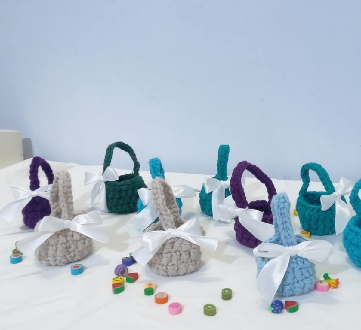 توزيعات سله لطيفه لمختلف المناسبات: حفلات السبوع، حفلات الزفاف، أو أعياد الميلاد ١٢ سم خيط تركي متاح التنفيذ بأي كمية عرض خاص: 50 قطعة بـ 3000 جنيه
