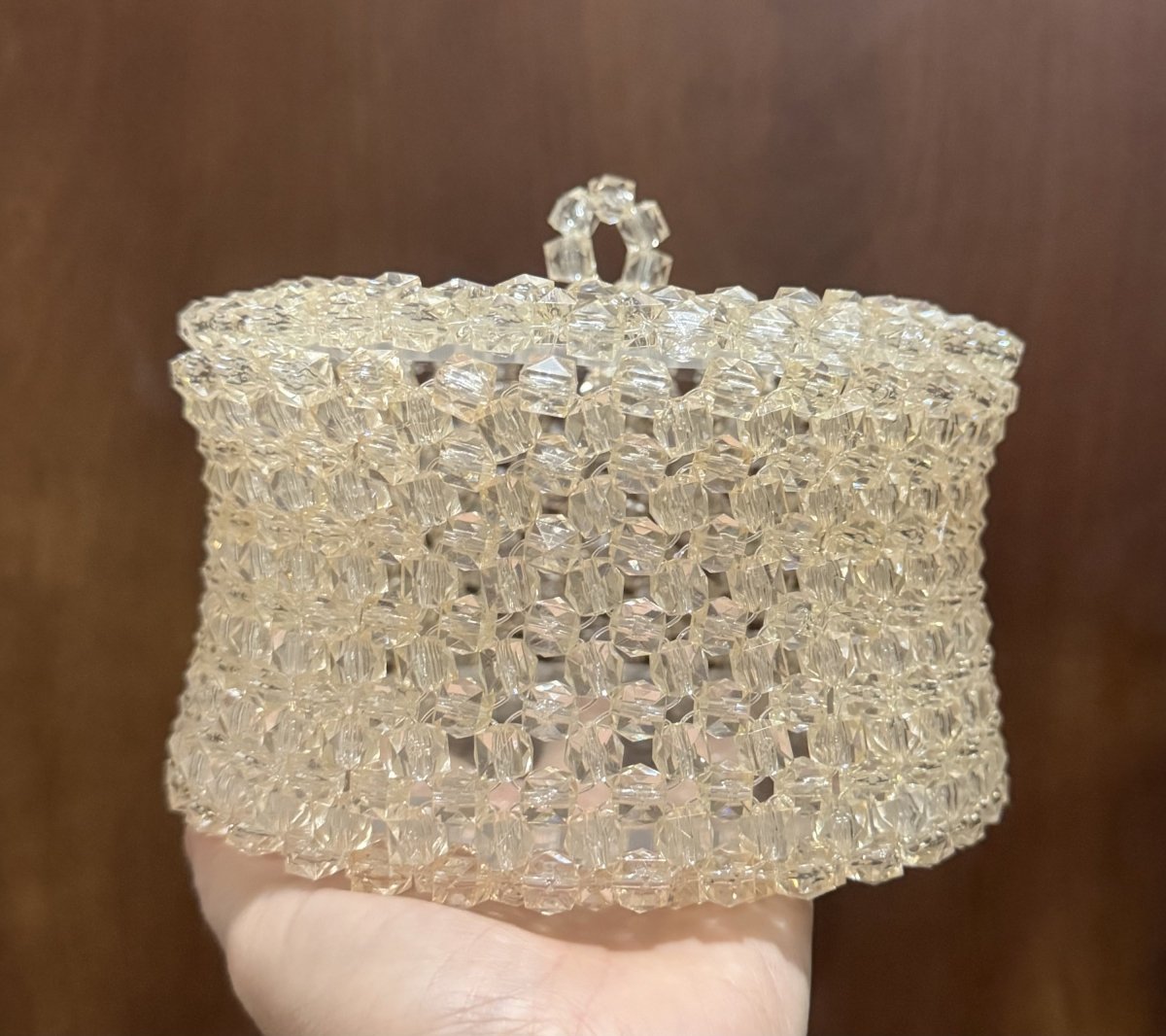 بونبونيره من الكريستال البلاستيك السداسي ذهبى اللون مع الأكريلك الشفاف عالى الجودة قطر الدائرة ١٧سم و الإرتفاع ١٠ سم