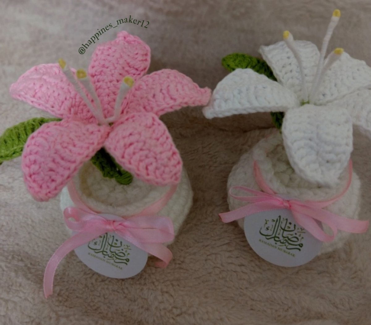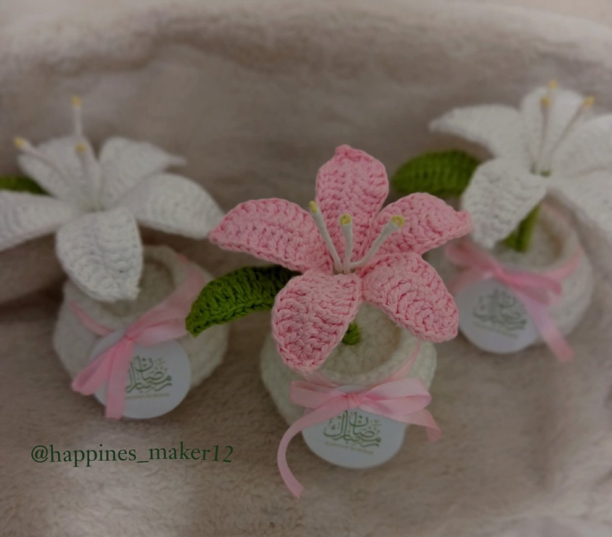 ورد الزنبق ديكور لطيف و توزيعات رقيقه لمختلف المناسبات حفلات الزفاف و السبوع و اعياد الميلاد خيوط تركي كروشيه
