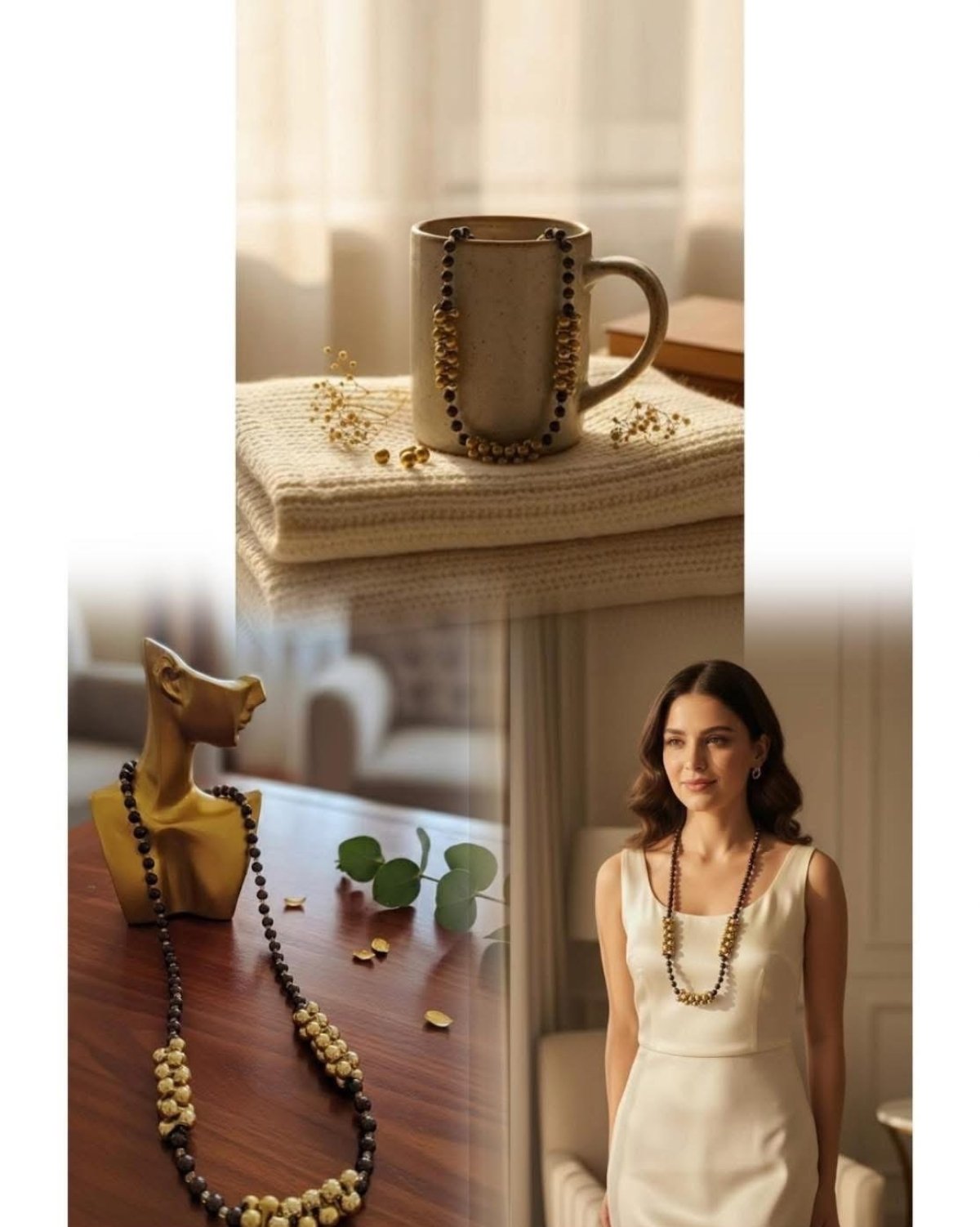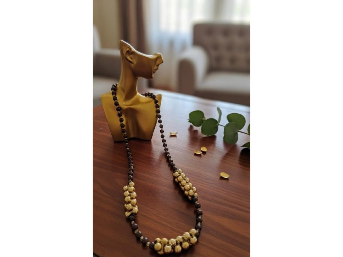 💫عقد السكون الذهبي💫 عقد هاند ميد بتصميم أنيق يجمع بين الخرز الأسود الهادئ ولمسة الذهب الفاخرة 🌟 قطعة بتتكلم عن القوة والرقي في نفس الوقت، تناسب الإطلالات الكلاسيك والسمبل، وتضيف لمسة فخامة لأي ستايل ✨ اختيار مثالي لكل بنت بتحب التميز والذوق الراقي 🤍