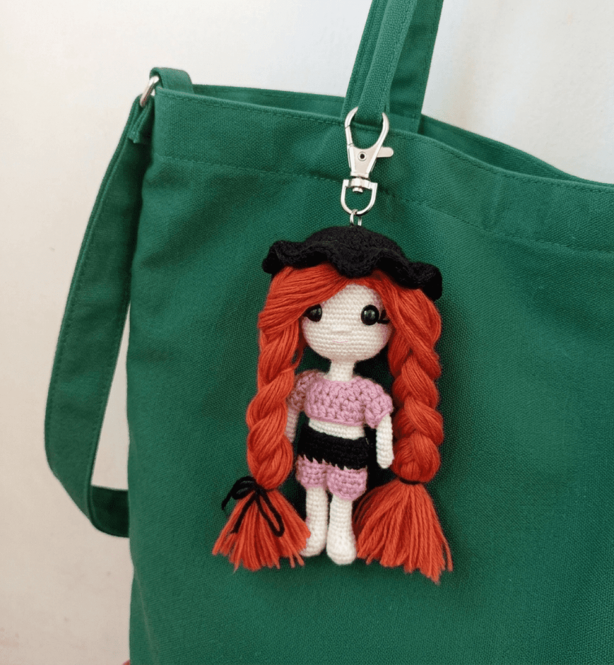 ميدالية شنطة هاند ميد مصنوعة بدقة من الكروشيه، بتصميم دمية مميزة بضفيرة طويلة ولمسة أنثوية جذابة 💖 بتضيف شكل كيوت وأنيق لأي شنطة أو باك، وبتعكس ذوقك المختلف في اختيار الإكسسوارات. 15Cm الخامات: خيوط عالية الجودة (ناعمة ومتينة) حشو فايبر خفيف يحافظ على شكل الدمية إكسسوارات تثبيت معدنية (للاستخدام كميدالية شنطة)