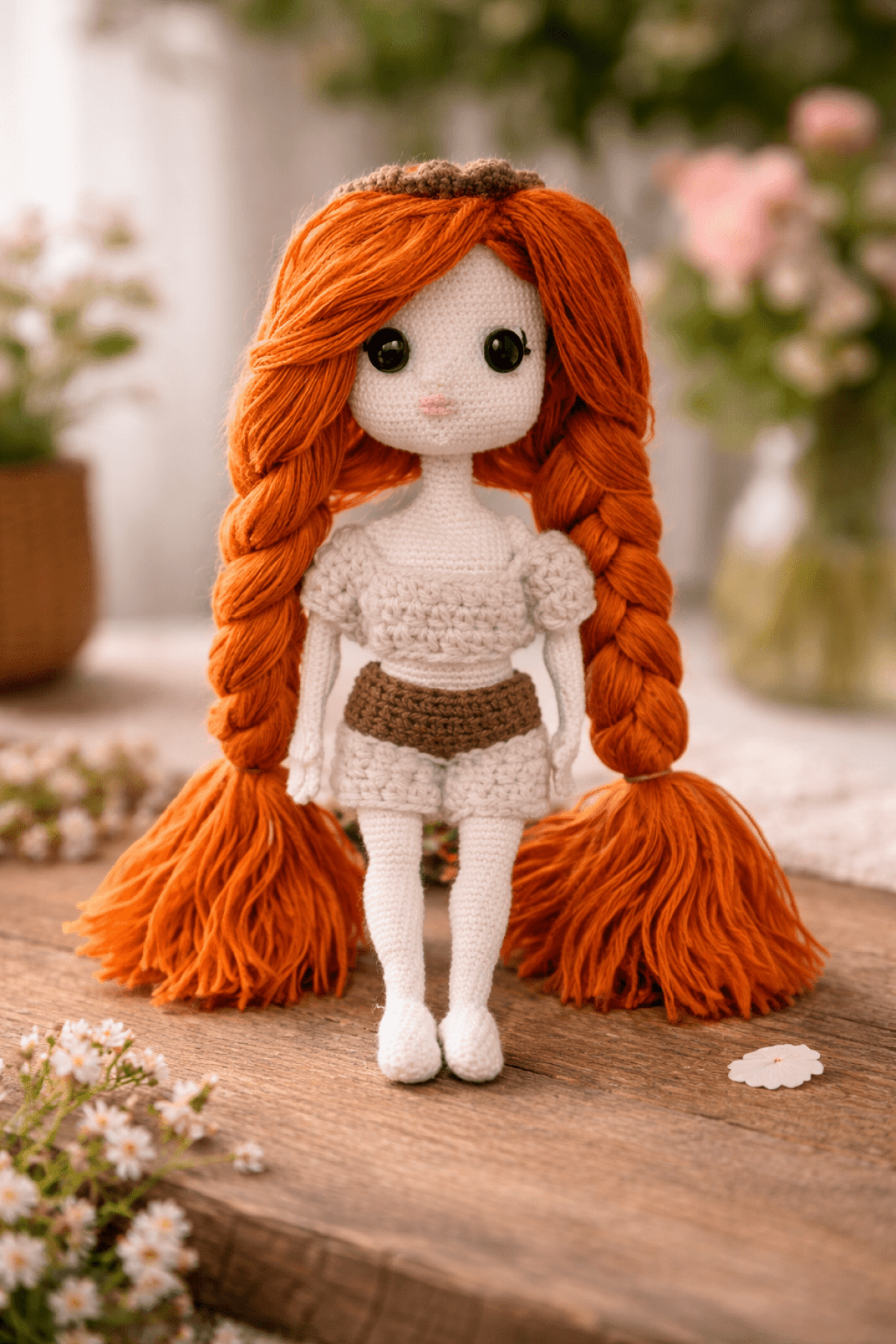 دمية كروشيه مصنوعة يدويًا بالكامل بعناية فائقة، بتفاصيل دقيقة ولمسة فنية مميزة. تتميز بشعر طويل على شكل ضفائر ناعمة يعطيها مظهر جذاب وأنيق، مع تصميم بسيط وألوان هادئة تناسب جميع الأذواق. مثالية كهدية مميزة في المناسبات أو كقطعة ديكور تضيف لمسة دافئة لأي مكان. ✔ مصنوعة يدويًا 100% ✔ خامات عالية الجودة وآمنة ✔ خفيفة الوزن وسهلة الحمل ✔ مناسبة للهدايا والتزيين 📏 المقاس: حوالي35 سم