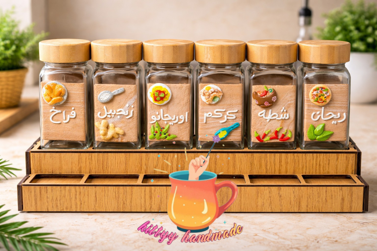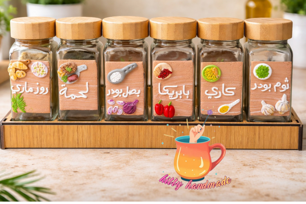 طقم توابل مميز مكون من ١٢ قطعة مصنوع من الصلصال الحرارى لا يدخل غسالة الاطباق يغسل فقط بالماء والصابون